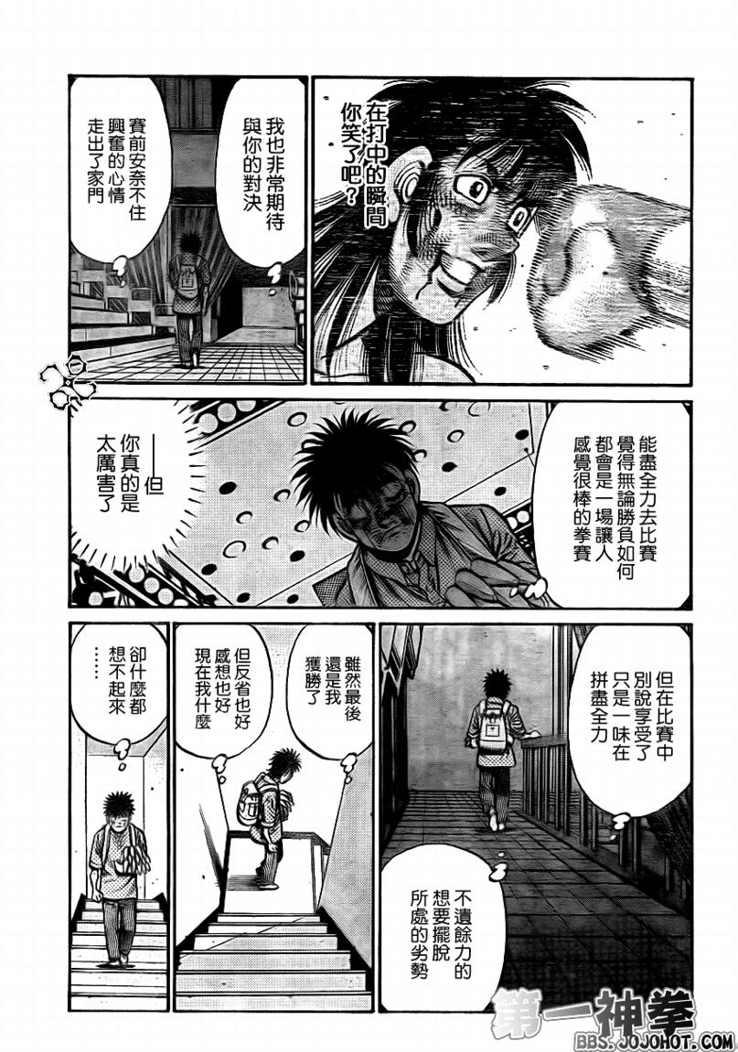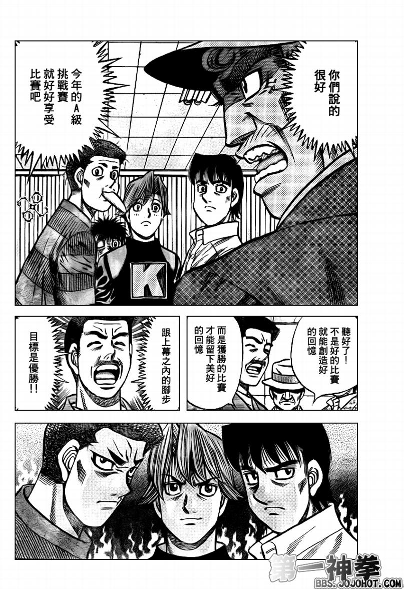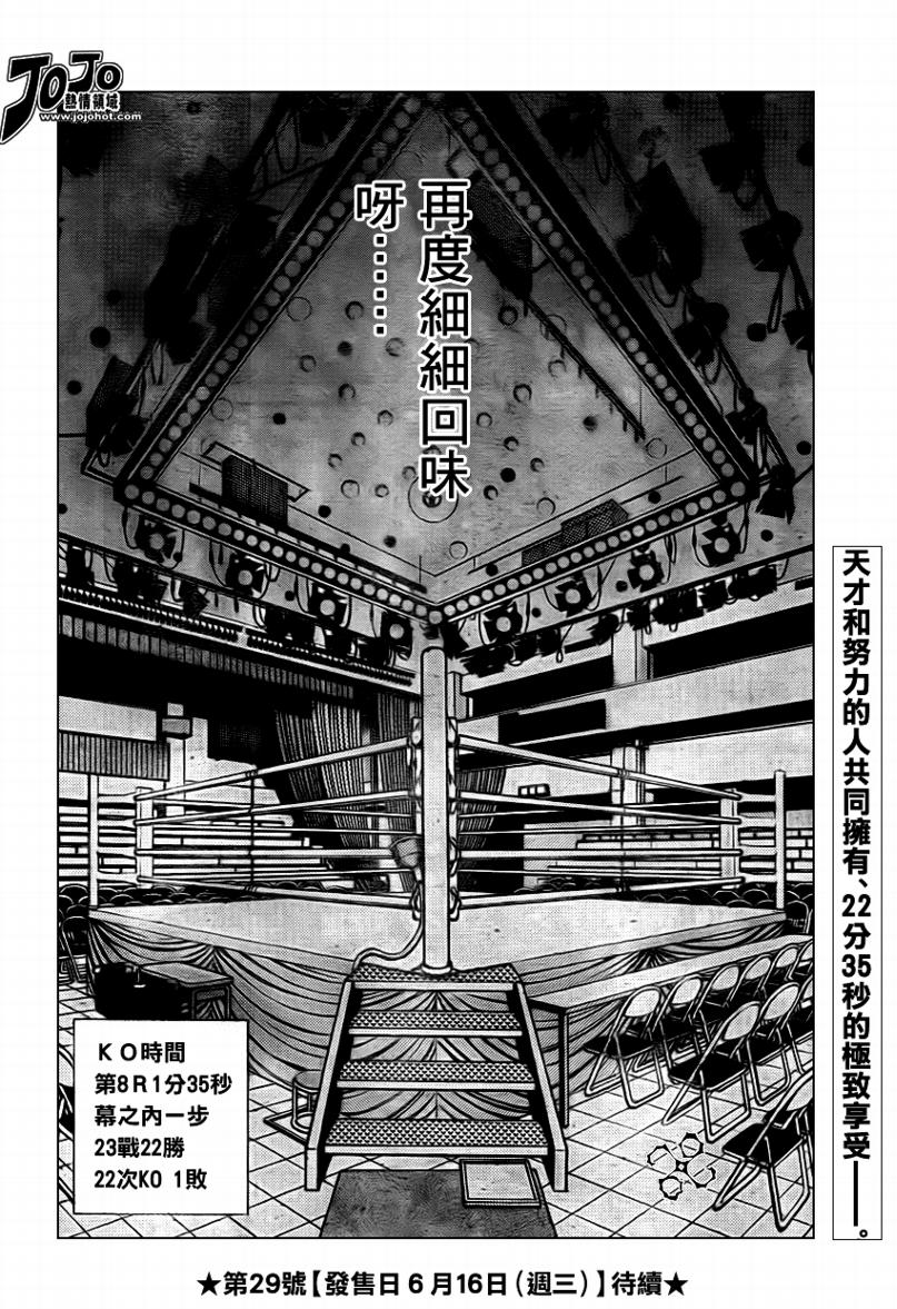所谓的“强大”是怎么回事呢?我也想变强大!老是打不赢别人、被人欺负的高中生幕之内一步,跟拳手鹰村相遇后,体内潜伏的黄色炸药神拳终于被唤醒!幕之内一步懹抱著职业拳手的美梦,准备要向鸭川拳馆的入门测试挑战了! 之内一步与首位强敌宫田一郎再度决战的铃响起了!面对著宫田漂亮的步法,一步向胜利挑战!现在[]在要测试一下会长不眠不休、付出血汗调教的特训成果!连续猛击打倒宫中,摧毁那必杀的长拳攻击绝招! 终于,初次登场赛的日子来临,应战的敌手是小田裕介–擅打右钩拳的拳手,一步之周围的好友都认为他一定会胜利!但是到了擂台上,小田却有如脱胎换骨一般!超级激烈战斗始!一步能在初次登场赛中赢得胜利吗[-折叠]