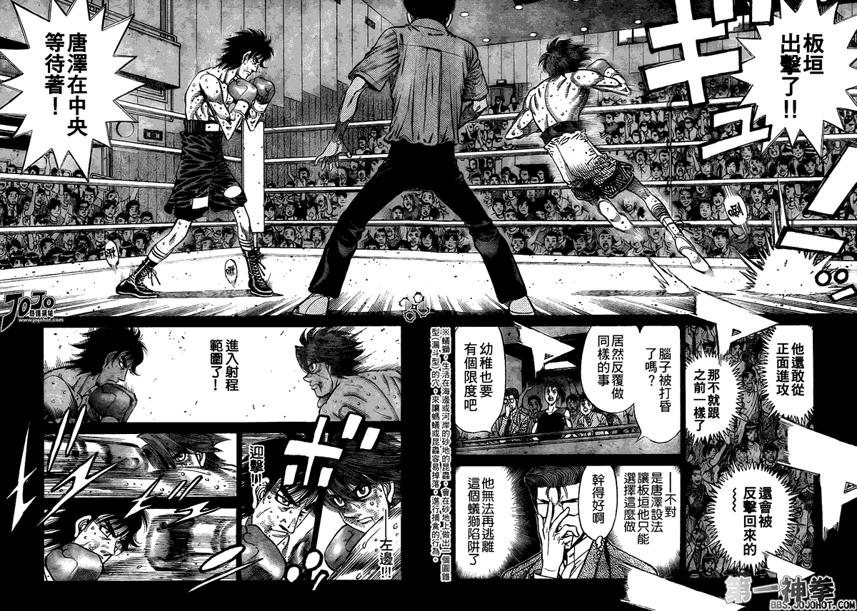 所谓的“强大”是怎么回事呢?我也想变强大!老是打不赢别人、被人欺负的高中生幕之内一步,跟拳手鹰村相遇后,体内潜伏的黄色炸药神拳终于被唤醒!幕之内一步懹抱著职业拳手的美梦,准备要向鸭川拳馆的入门测试挑战了! 之内一步与首位强敌宫田一郎再度决战的铃响起了!面对著宫田漂亮的步法,一步向胜利挑战!现在[]在要测试一下会长不眠不休、付出血汗调教的特训成果!连续猛击打倒宫中,摧毁那必杀的长拳攻击绝招! 终于,初次登场赛的日子来临,应战的敌手是小田裕介–擅打右钩拳的拳手,一步之周围的好友都认为他一定会胜利!但是到了擂台上,小田却有如脱胎换骨一般!超级激烈战斗始!一步能在初次登场赛中赢得胜利吗[-折叠]