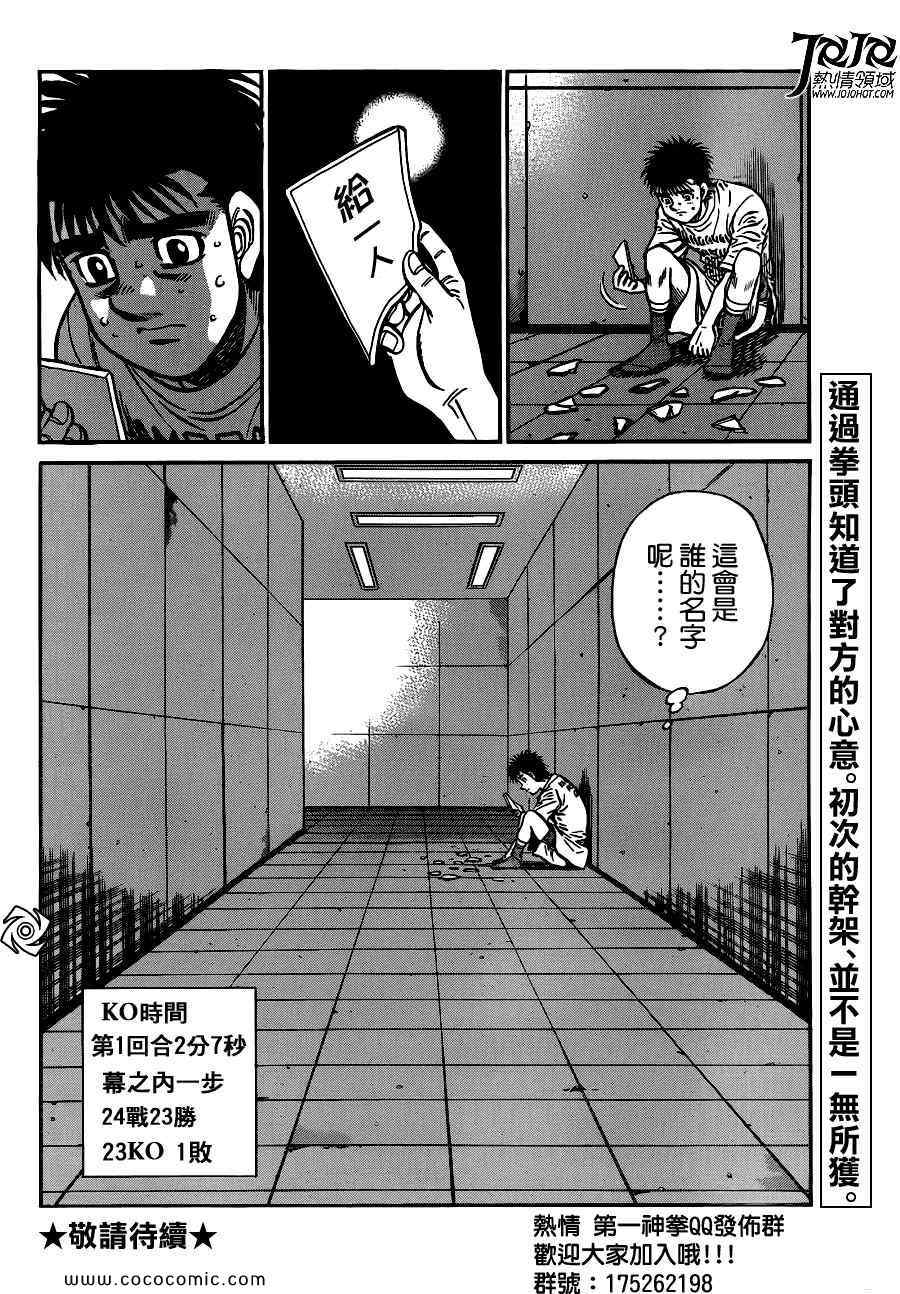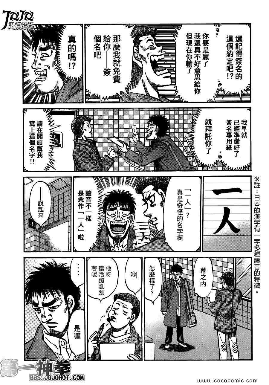 所谓的“强大”是怎么回事呢?我也想变强大!老是打不赢别人、被人欺负的高中生幕之内一步,跟拳手鹰村相遇后,体内潜伏的黄色炸药神拳终于被唤醒!幕之内一步懹抱著职业拳手的美梦,准备要向鸭川拳馆的入门测试挑战了! 之内一步与首位强敌宫田一郎再度决战的铃响起了!面对著宫田漂亮的步法,一步向胜利挑战!现在[]在要测试一下会长不眠不休、付出血汗调教的特训成果!连续猛击打倒宫中,摧毁那必杀的长拳攻击绝招! 终于,初次登场赛的日子来临,应战的敌手是小田裕介–擅打右钩拳的拳手,一步之周围的好友都认为他一定会胜利!但是到了擂台上,小田却有如脱胎换骨一般!超级激烈战斗始!一步能在初次登场赛中赢得胜利吗[-折叠]