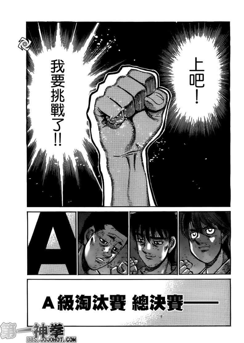 所谓的“强大”是怎么回事呢?我也想变强大!老是打不赢别人、被人欺负的高中生幕之内一步,跟拳手鹰村相遇后,体内潜伏的黄色炸药神拳终于被唤醒!幕之内一步懹抱著职业拳手的美梦,准备要向鸭川拳馆的入门测试挑战了! 之内一步与首位强敌宫田一郎再度决战的铃响起了!面对著宫田漂亮的步法,一步向胜利挑战!现在[]在要测试一下会长不眠不休、付出血汗调教的特训成果!连续猛击打倒宫中,摧毁那必杀的长拳攻击绝招! 终于,初次登场赛的日子来临,应战的敌手是小田裕介–擅打右钩拳的拳手,一步之周围的好友都认为他一定会胜利!但是到了擂台上,小田却有如脱胎换骨一般!超级激烈战斗始!一步能在初次登场赛中赢得胜利吗[-折叠]