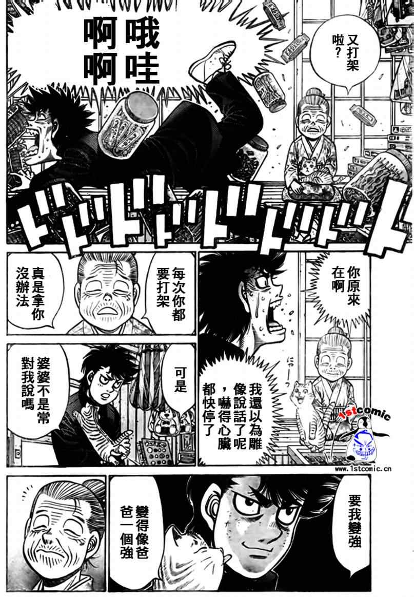 所谓的“强大”是怎么回事呢?我也想变强大!老是打不赢别人、被人欺负的高中生幕之内一步,跟拳手鹰村相遇后,体内潜伏的黄色炸药神拳终于被唤醒!幕之内一步懹抱著职业拳手的美梦,准备要向鸭川拳馆的入门测试挑战了! 之内一步与首位强敌宫田一郎再度决战的铃响起了!面对著宫田漂亮的步法,一步向胜利挑战!现在[]在要测试一下会长不眠不休、付出血汗调教的特训成果!连续猛击打倒宫中,摧毁那必杀的长拳攻击绝招! 终于,初次登场赛的日子来临,应战的敌手是小田裕介–擅打右钩拳的拳手,一步之周围的好友都认为他一定会胜利!但是到了擂台上,小田却有如脱胎换骨一般!超级激烈战斗始!一步能在初次登场赛中赢得胜利吗[-折叠]
