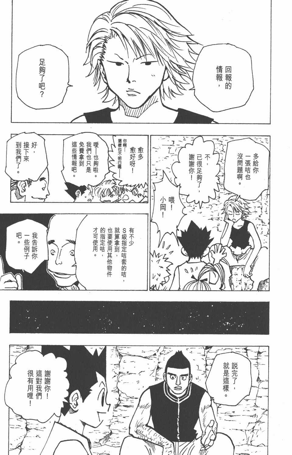 为了寻找多年不见的爸爸,小冈决定成为父亲一般优秀的猎人。为了达成心愿,他始踏上崎旅程,接受重重测试。《幽游白书》作者最新力作。 众准备猎人进入第二次测试,郤遇上美食猎人美滋,并且他们以“烹饪”作为第二次测试的题目。可是由于美滋的求太高,以致连一个合格的人也没有……????? 小[]小冈等人与超长期因犯进行五局三胜制的决斗。正当两胜两负关键时刻,基路亚出战,敌方迎战的竟是肢解杀人狂[-折叠]