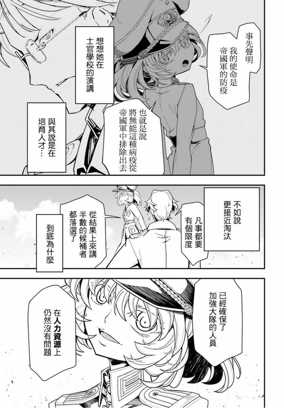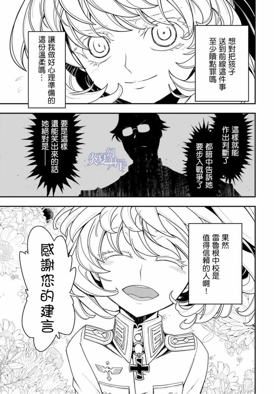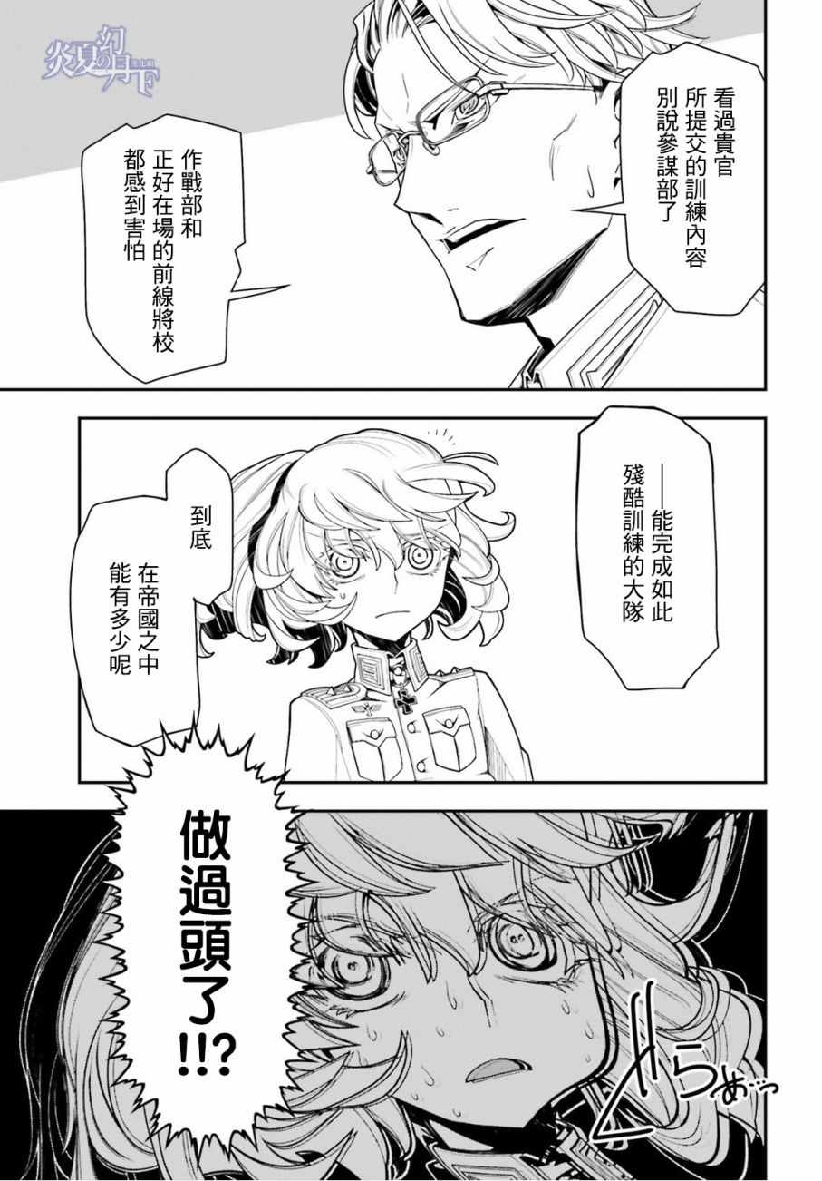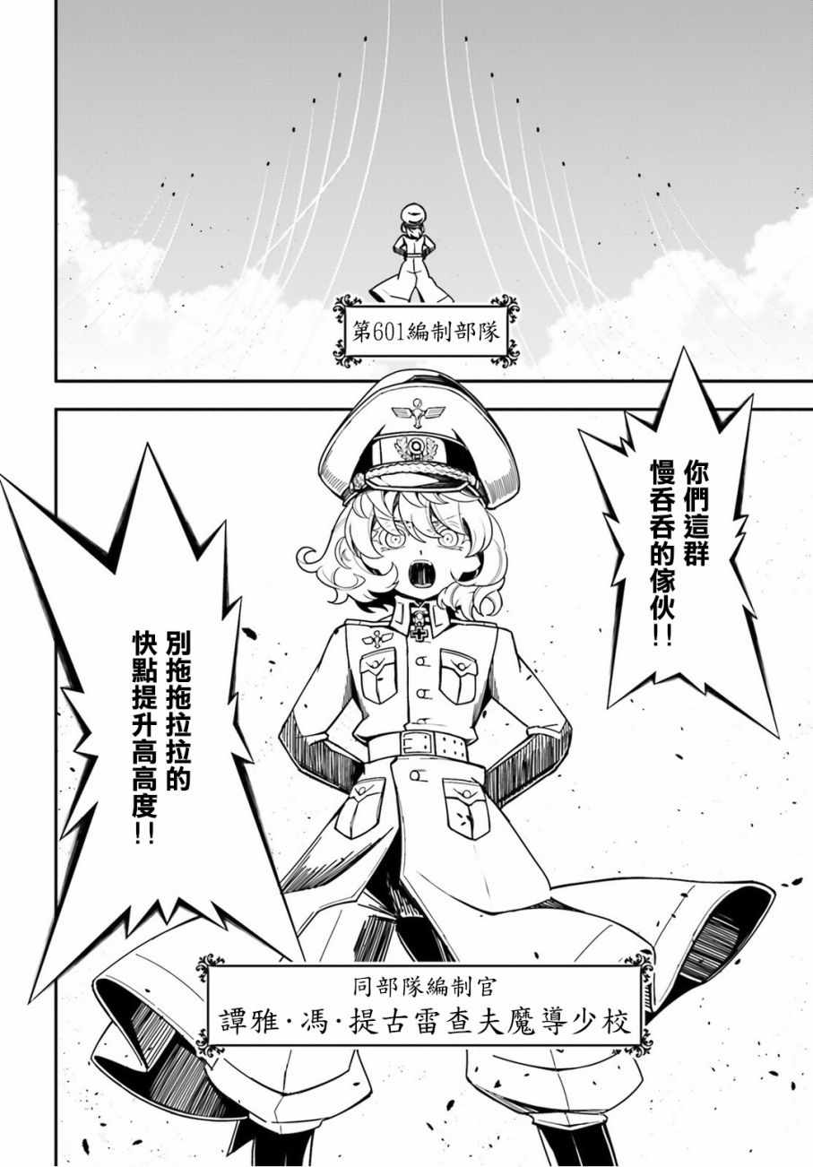 有著金发碧眼与白皙肌肤的幼女翱翔天际,残忍无情地击坠敌军。 以幼女口齿不清的语调指挥大军的她,名叫谭雅.提古雷查夫。 然而她的真实身分,则是在神的失控下转生成为幼女的菁英上班族。 把效率与出人头地看得比什么都还重要的幼女提古雷查夫,逐渐成为帝国军魔导师当中最危险的存在——