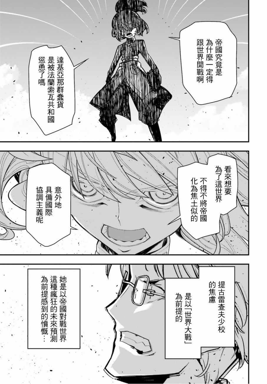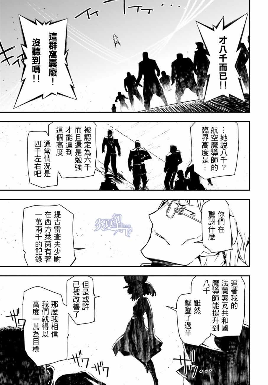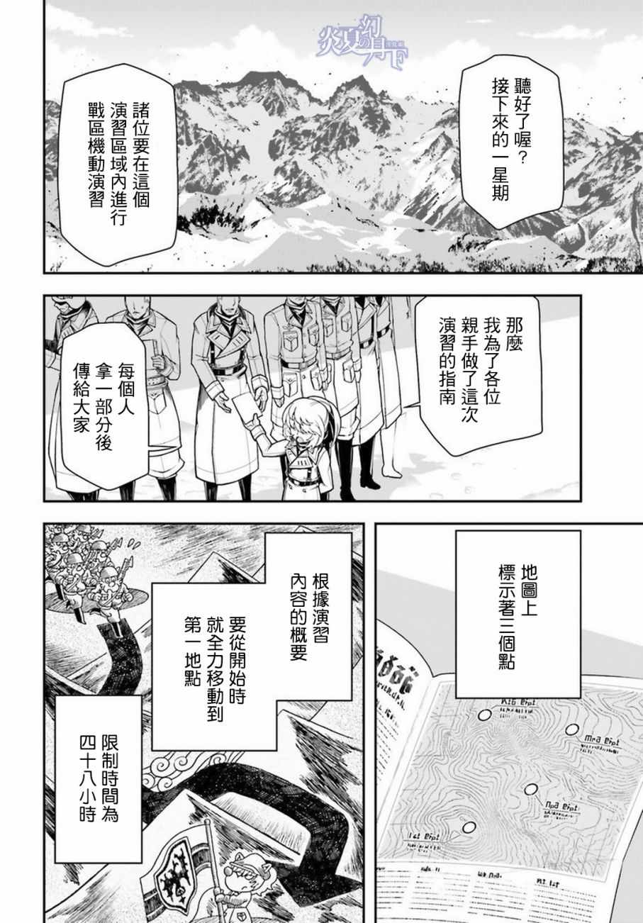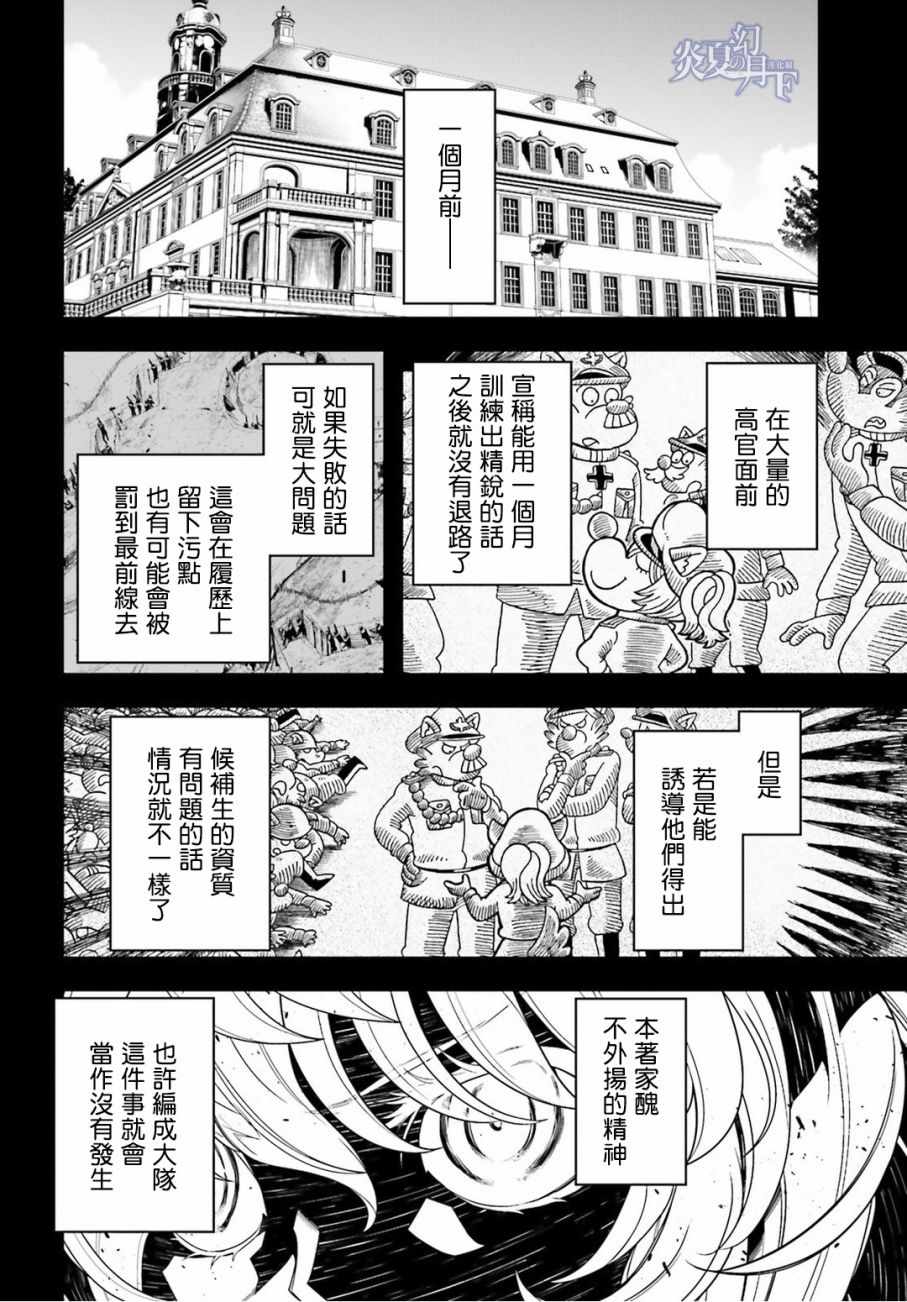 有著金发碧眼与白皙肌肤的幼女翱翔天际,残忍无情地击坠敌军。 以幼女口齿不清的语调指挥大军的她,名叫谭雅.提古雷查夫。 然而她的真实身分,则是在神的失控下转生成为幼女的菁英上班族。 把效率与出人头地看得比什么都还重要的幼女提古雷查夫,逐渐成为帝国军魔导师当中最危险的存在——