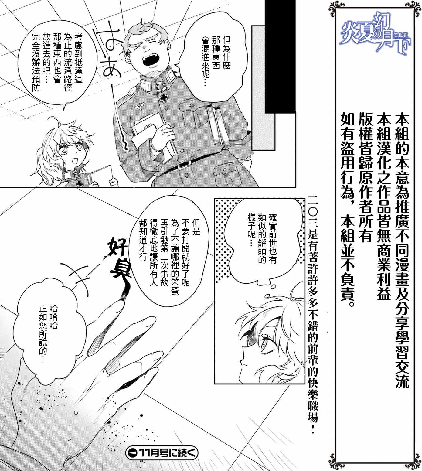 有著金发碧眼与白皙肌肤的幼女翱翔天际,残忍无情地击坠敌军。 以幼女口齿不清的语调指挥大军的她,名叫谭雅.提古雷查夫。 然而她的真实身分,则是在神的失控下转生成为幼女的菁英上班族。 把效率与出人头地看得比什么都还重要的幼女提古雷查夫,逐渐成为帝国军魔导师当中最危险的存在——