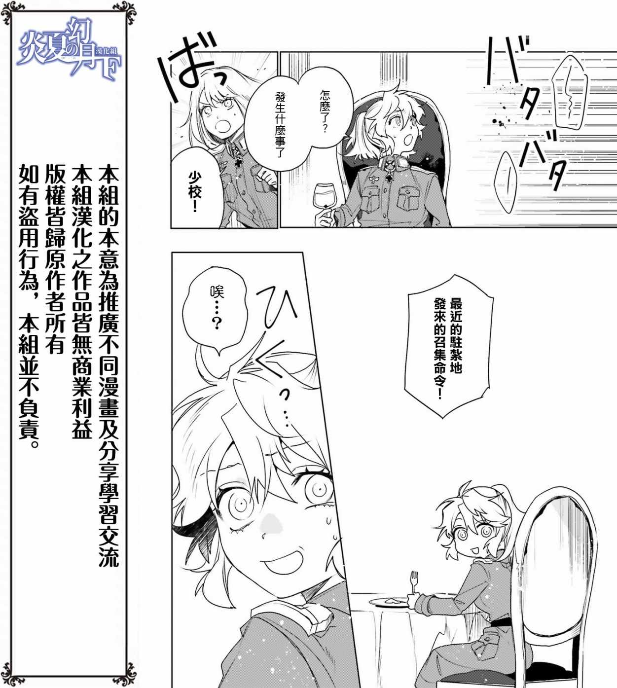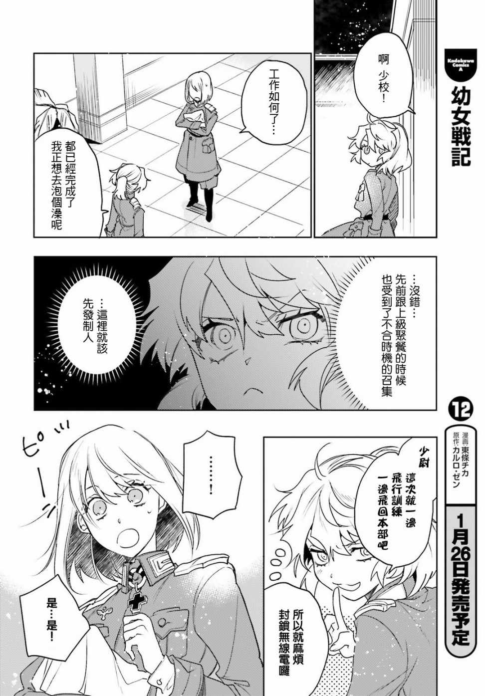 有著金发碧眼与白皙肌肤的幼女翱翔天际,残忍无情地击坠敌军。 以幼女口齿不清的语调指挥大军的她,名叫谭雅.提古雷查夫。 然而她的真实身分,则是在神的失控下转生成为幼女的菁英上班族。 把效率与出人头地看得比什么都还重要的幼女提古雷查夫,逐渐成为帝国军魔导师当中最危险的存在——