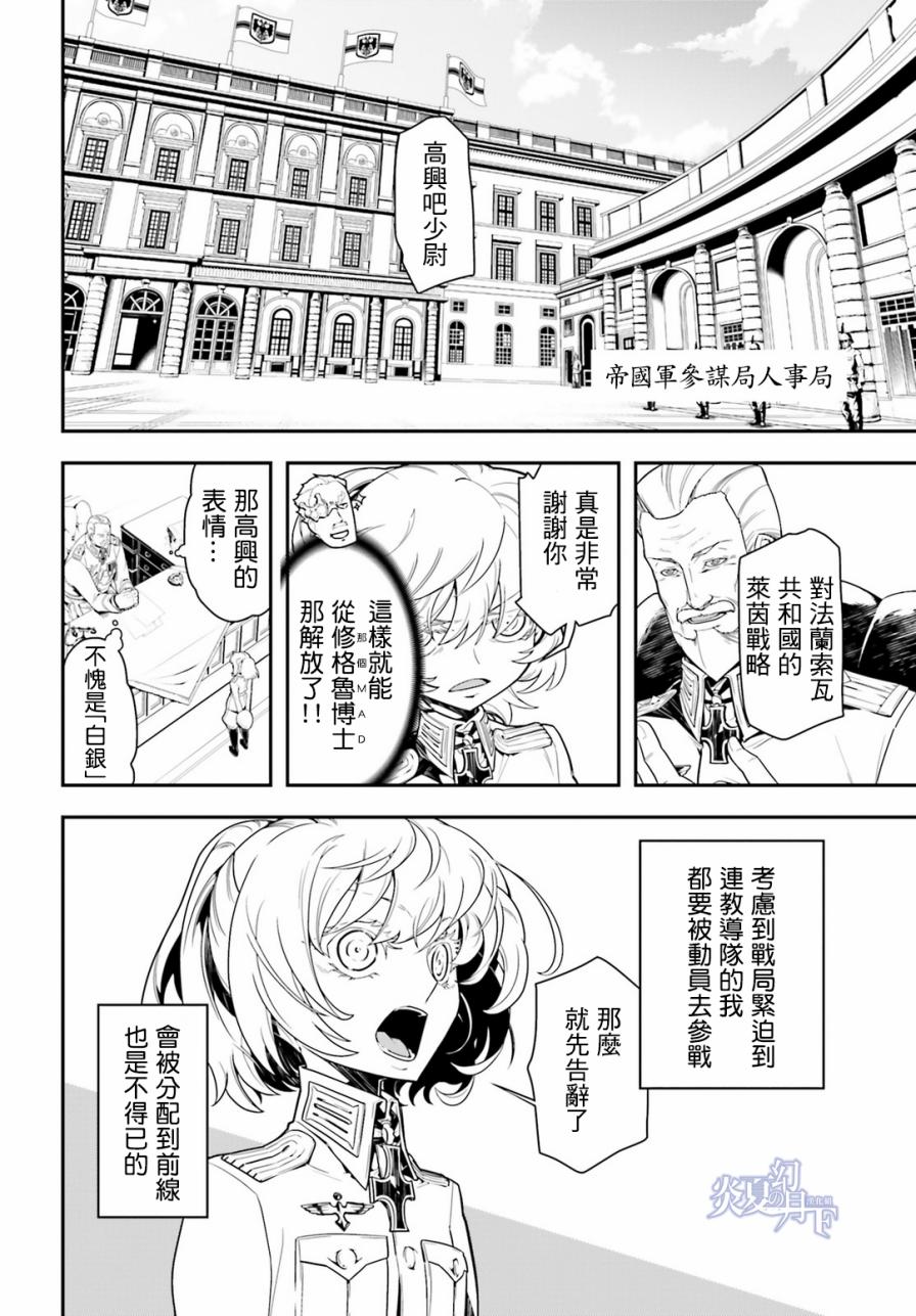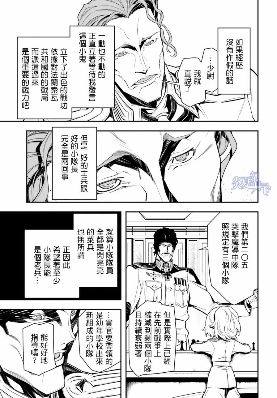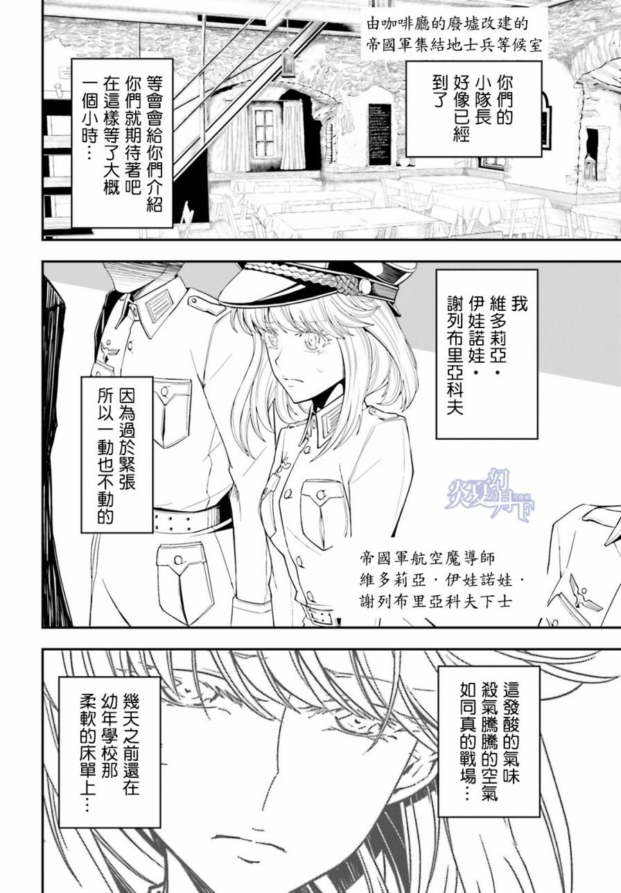 有著金发碧眼与白皙肌肤的幼女翱翔天际,残忍无情地击坠敌军。 以幼女口齿不清的语调指挥大军的她,名叫谭雅.提古雷查夫。 然而她的真实身分,则是在神的失控下转生成为幼女的菁英上班族。 把效率与出人头地看得比什么都还重要的幼女提古雷查夫,逐渐成为帝国军魔导师当中最危险的存在——
