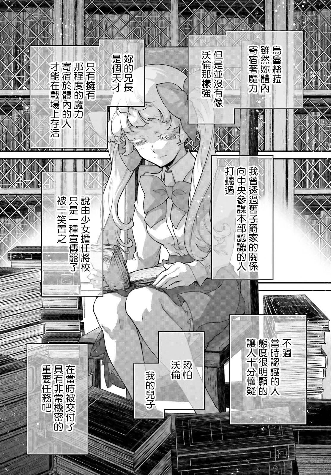 有著金发碧眼与白皙肌肤的幼女翱翔天际,残忍无情地击坠敌军。 以幼女口齿不清的语调指挥大军的她,名叫谭雅.提古雷查夫。 然而她的真实身分,则是在神的失控下转生成为幼女的菁英上班族。 把效率与出人头地看得比什么都还重要的幼女提古雷查夫,逐渐成为帝国军魔导师当中最危险的存在——