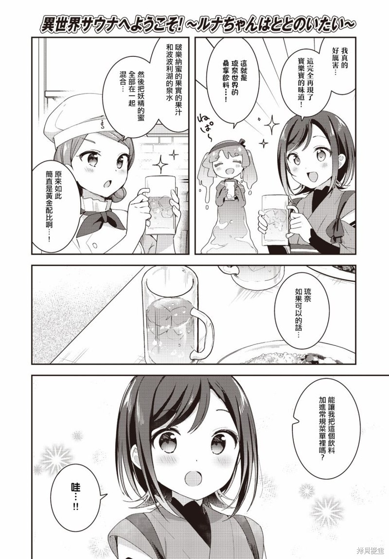 欢迎来到异世界桑拿房!~小流奈想要身心舒泰~漫画 ,因为疲劳值过高而莫名其妙进入了神秘的异世界桑拿房,在这里小玲奈感受到了前所未有的治愈... 但好像治愈过头了,导致传送装置出错无法回到原来的世界,小玲奈决定要留下来帮忙,让这个梦之桑拿房发扬光大!!