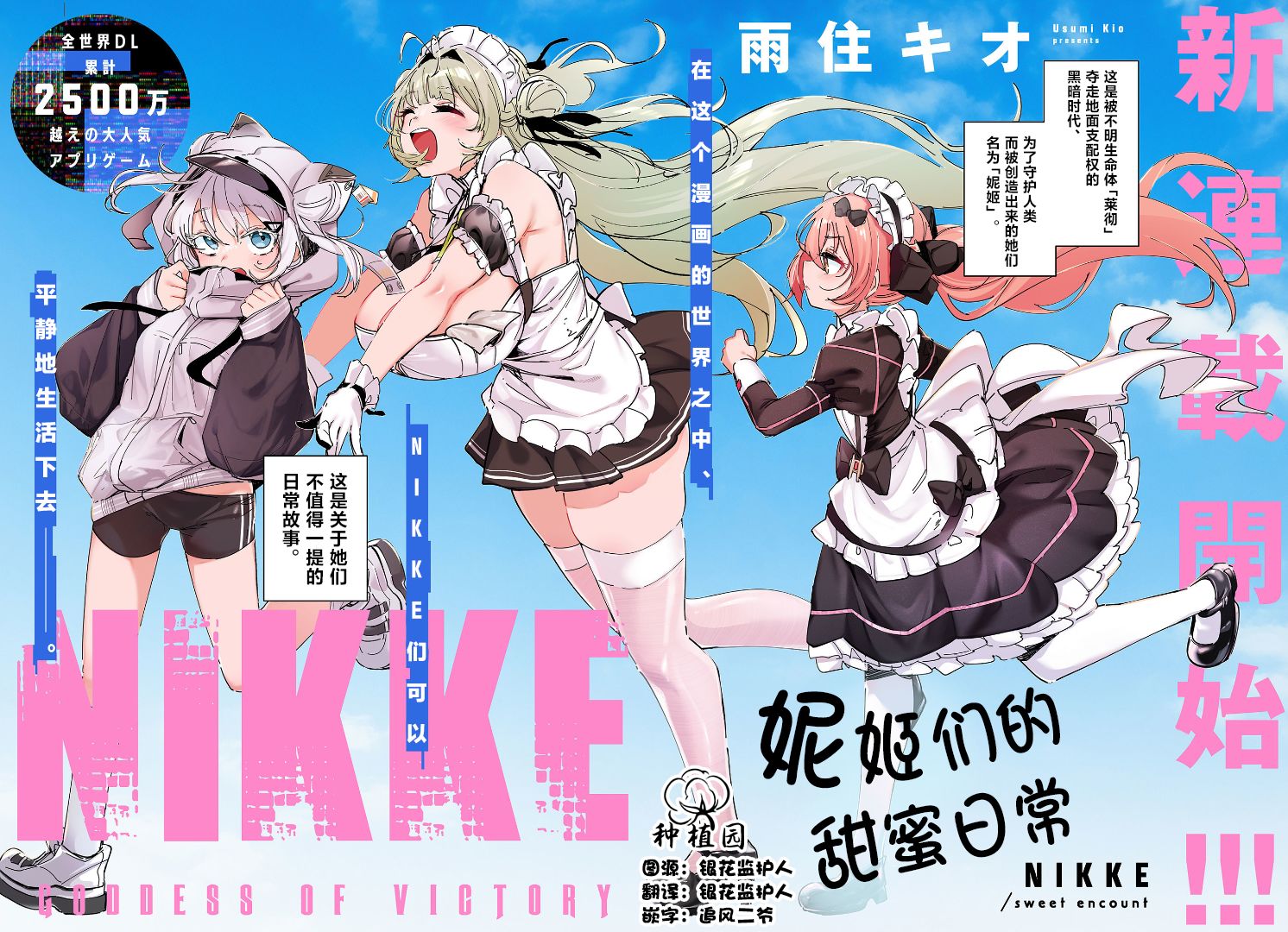 全球累计下载量超2500万的超人气手游《NIKKE》的首部官方漫画。在这个漫画的世界里,NIKKE们都在和平地生活——。主人公N在可可和苏打的女仆咖啡厅「女仆 for you」中作为女仆工作的悠闲喜剧?