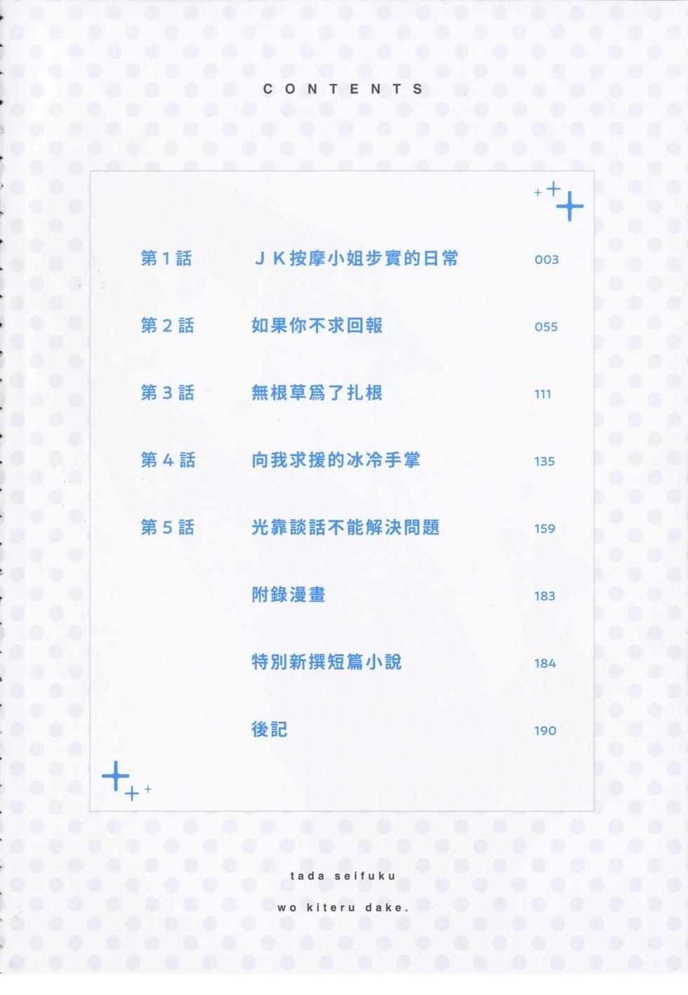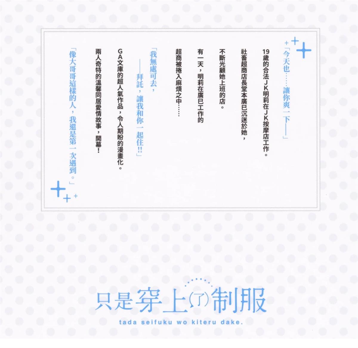 《只是穿著制服而已》小说同名改编漫画。这个人每周都会来一次JK按摩店,却只是来玩游戏而已?