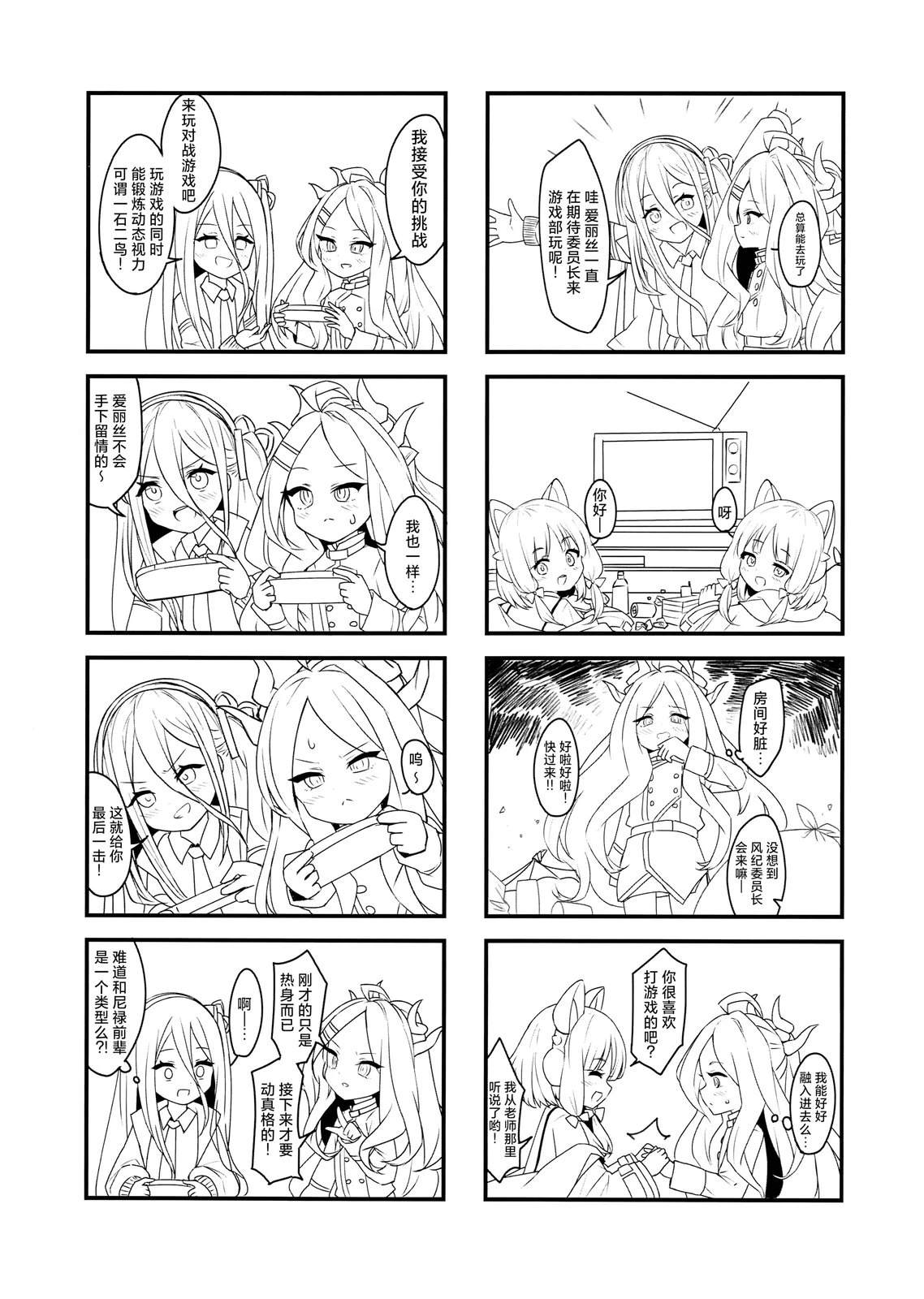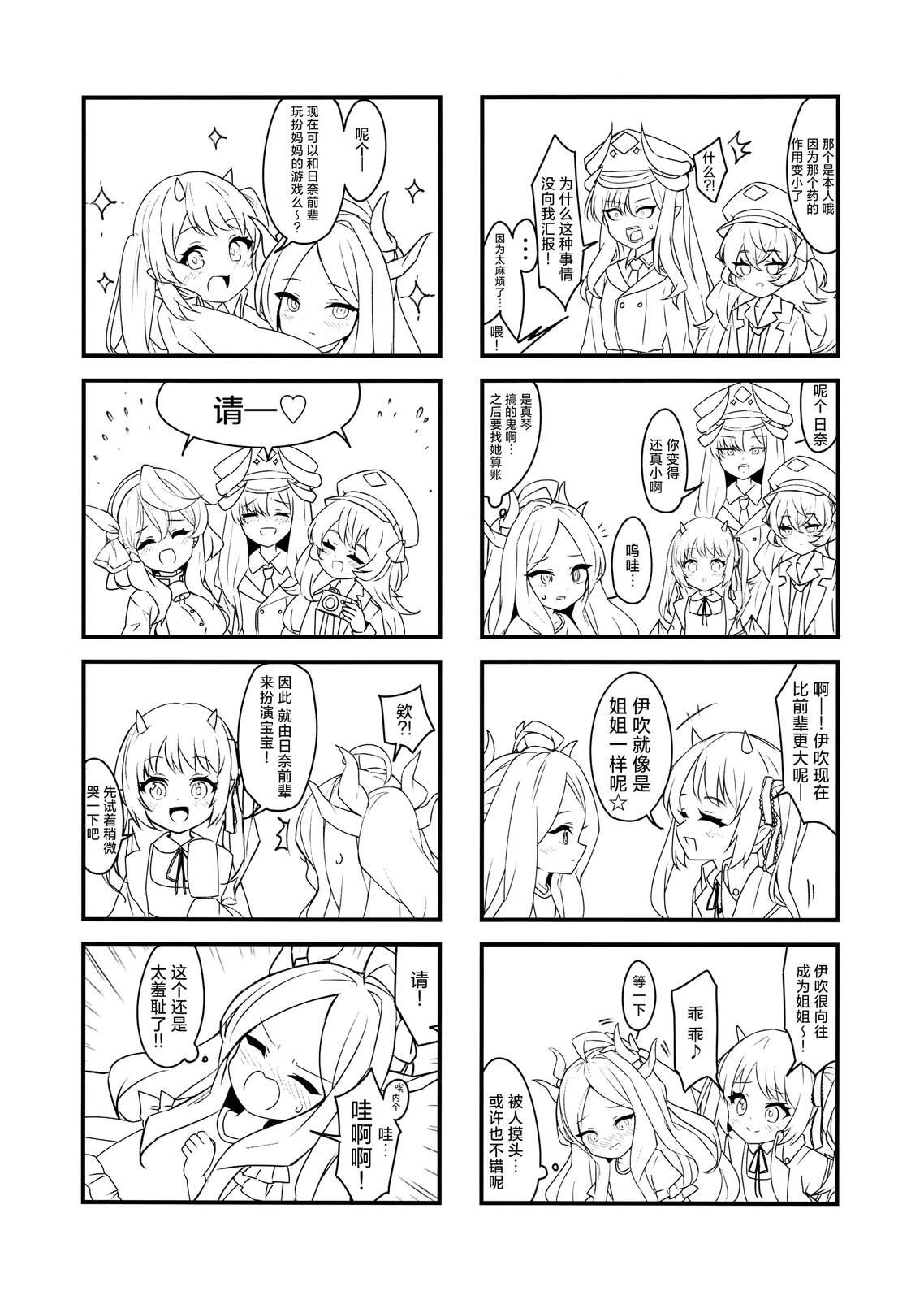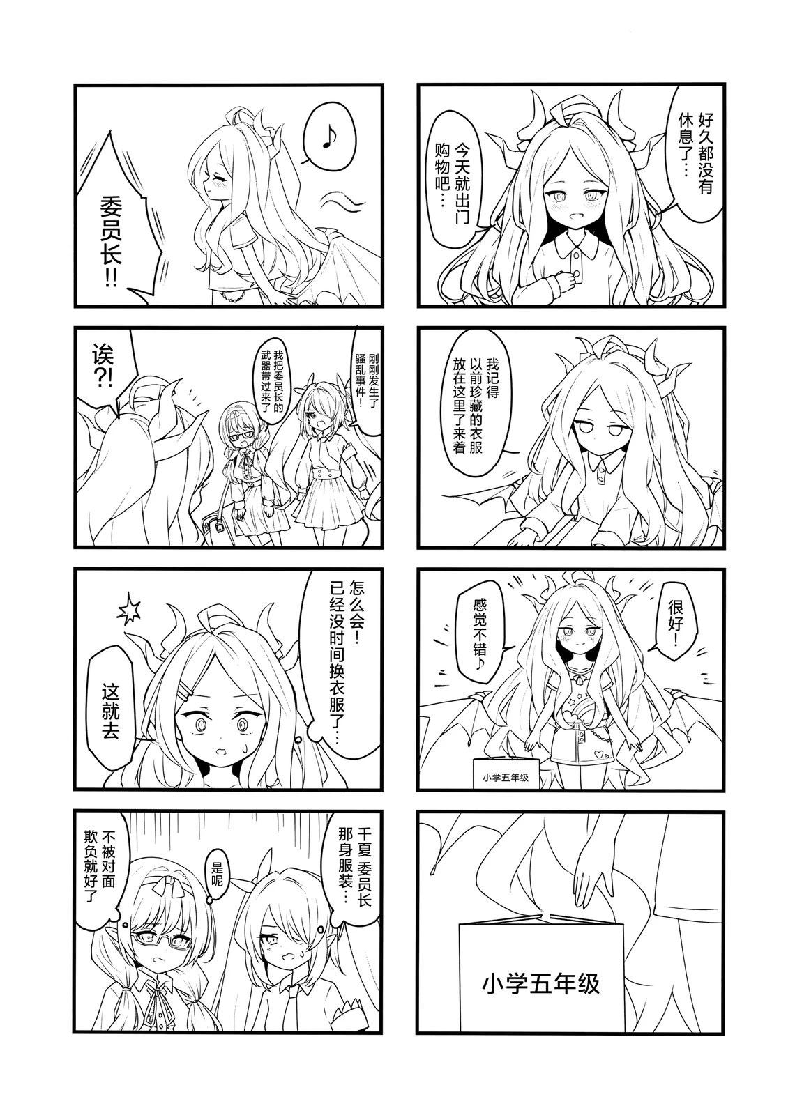 以空崎日奈为主角的四格漫画,因为时间关系只画了简笔。