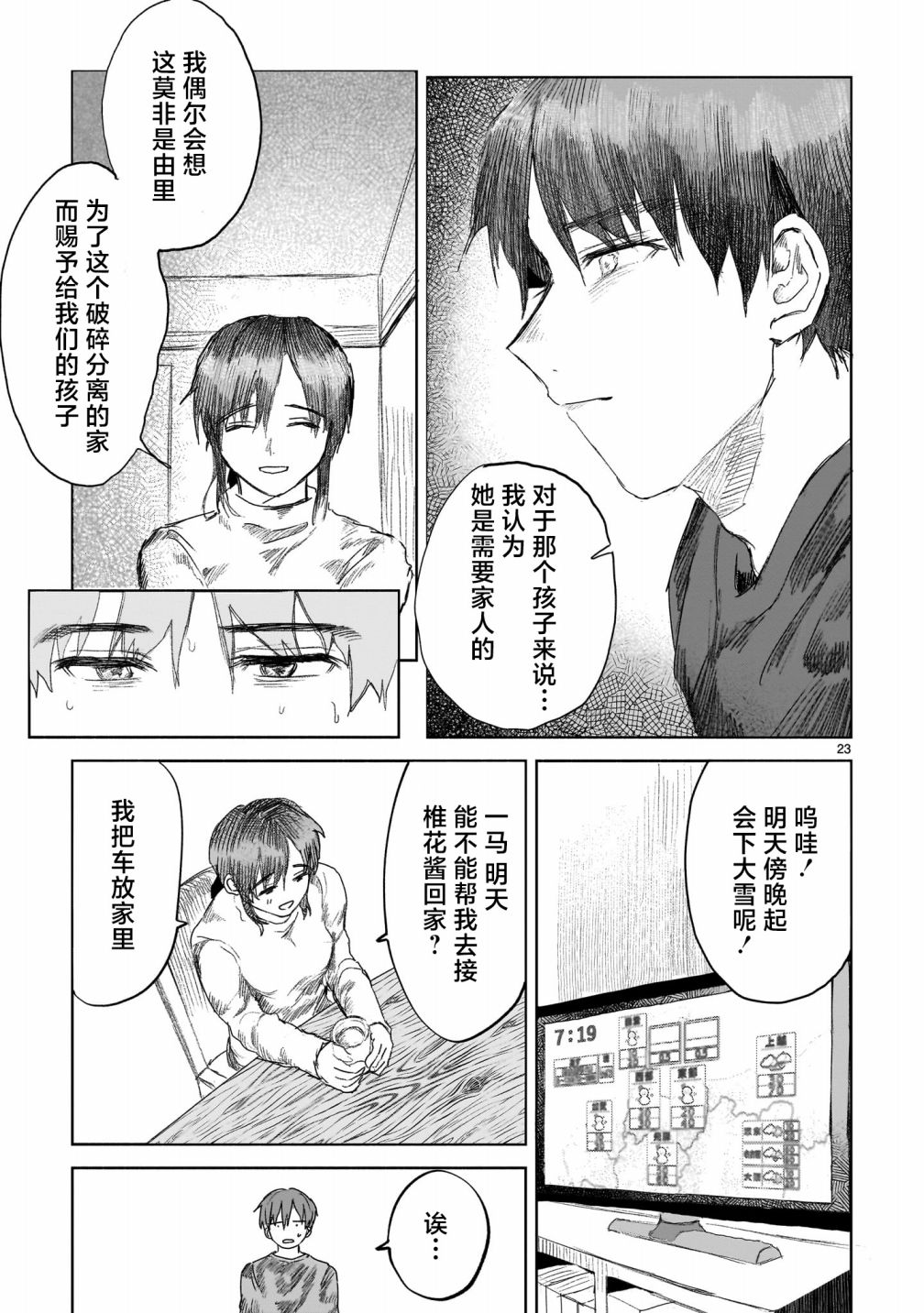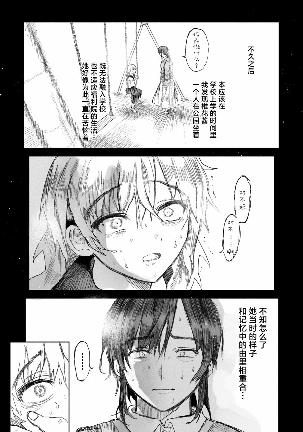 モモヤマハト一般向新连载《最果てに惑う》。主角的妹妹被补习班老师强奸而自杀。他杀死老师为妹妹报仇,服刑出狱之后也一直感到自责,本打算自杀赎罪,却在妹妹的墓前遇到了老师年幼的女儿……