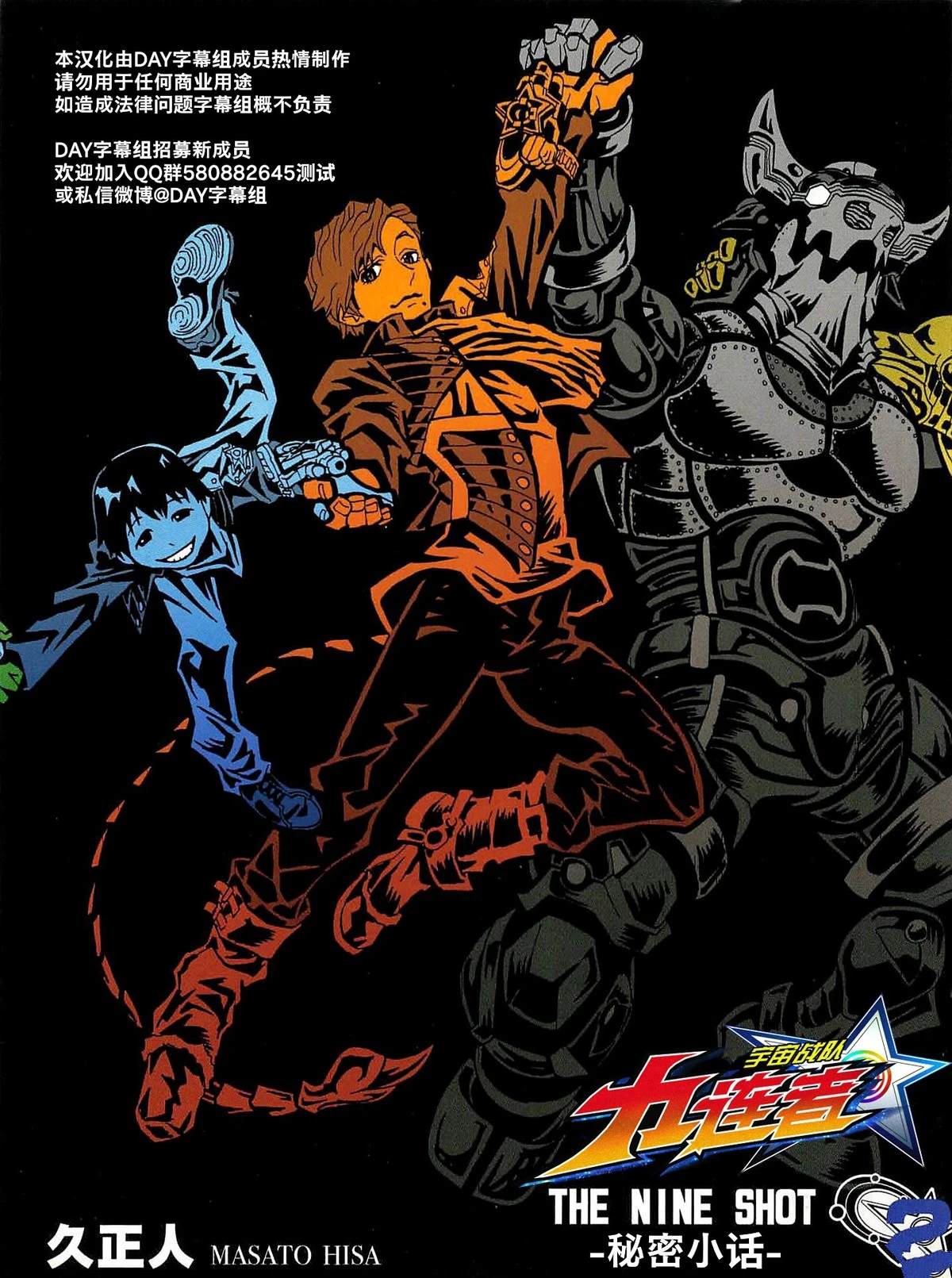 东映特摄剧,宇宙战队九连者特典漫画。 故事的舞台是遥远未来的宇宙,宇宙哭泣了......... 形成整个宇宙的88个星系,因由邪恶组织「宇宙幕府[32]Jerk Matter」支配而失去了希望......... 就在人们落泪的当下,被寄宿著星座力量的不可思议道具——「九惑星」所选中的9位战士突然出现[]现,而这被选中的9位精锐战士正是来自不同星系的「九连者」[-折叠]