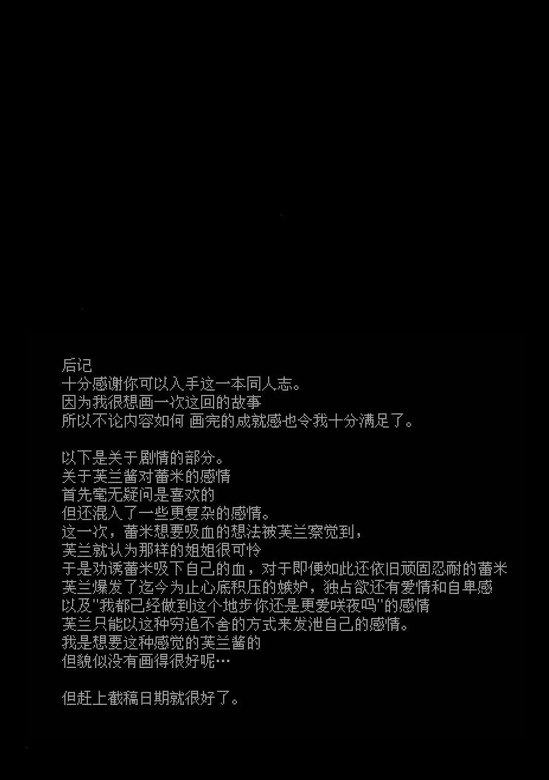 《东方幻想乡》的前传故事!? 寻找对手的幽香,这一天来到了梦幻馆。在一番激战之后,竟不知不觉成为了梦幻馆的新主人。面对新的仆人,幽香又是怎样进行「调教」的呢?