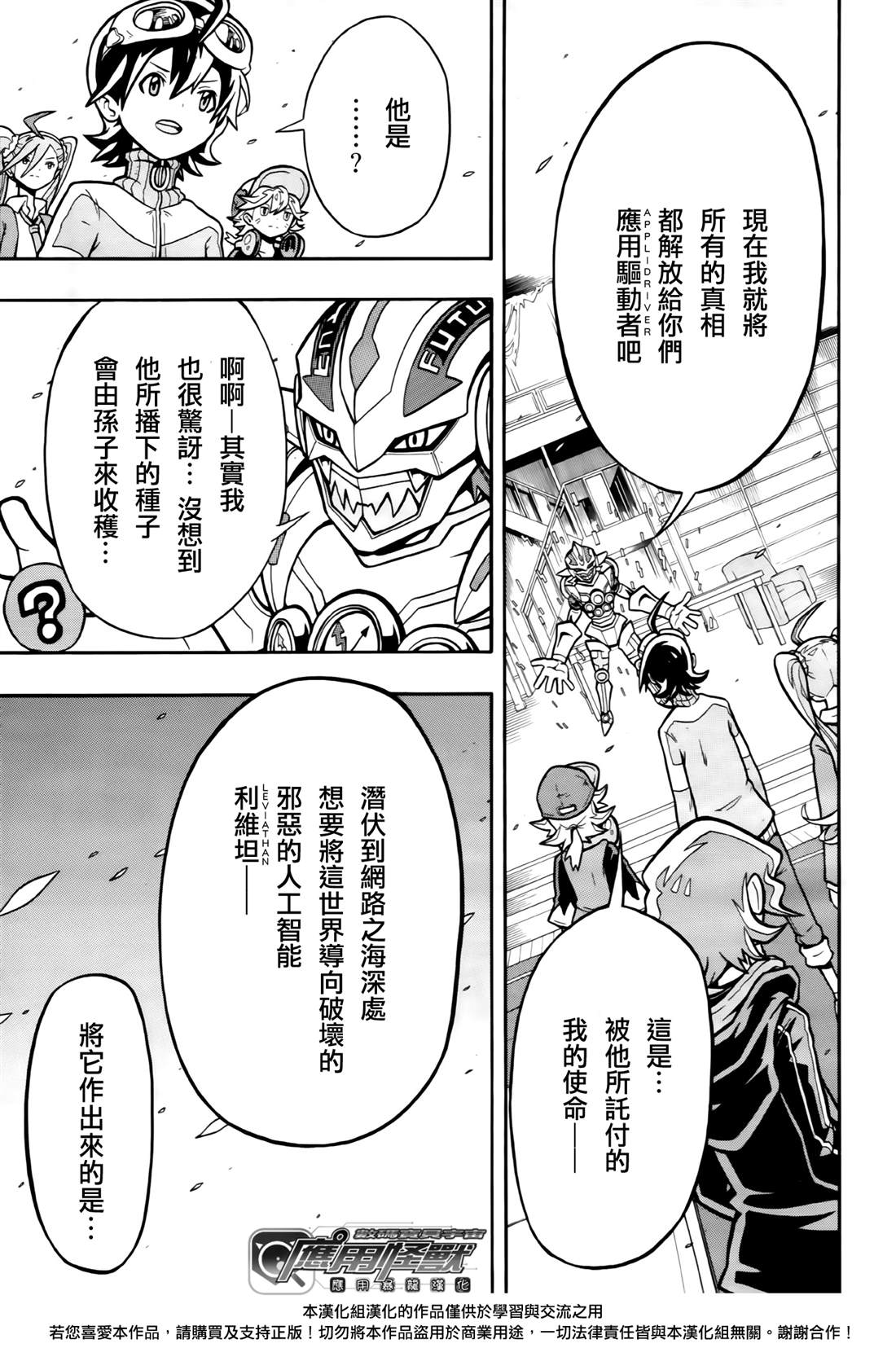 如今,全世界所有人都在使用的智能手机应用。那里潜藏著无人知晓的存在·应用怪兽,通称「应用兽」。应用兽是能够自主思考行动的人工智能的应用生命体,在人类世界与数码空间的间隙中,为系统及人类发挥著机能。 但是,潜藏在网络之海中的「凶恶的最终BOSS人工智能·利维坦」化作病毒控制了应用兽们,并始黑入各个系[]系统,企图从网络一侧控制人类的世界。 主人公少年·新海春,获得了被伟大的意志引导的「应用驱动」,并使来自「应用芯片」的搜索应用·盖奇兽实体化了[-折叠]