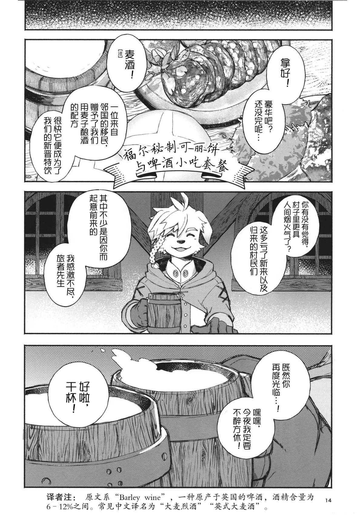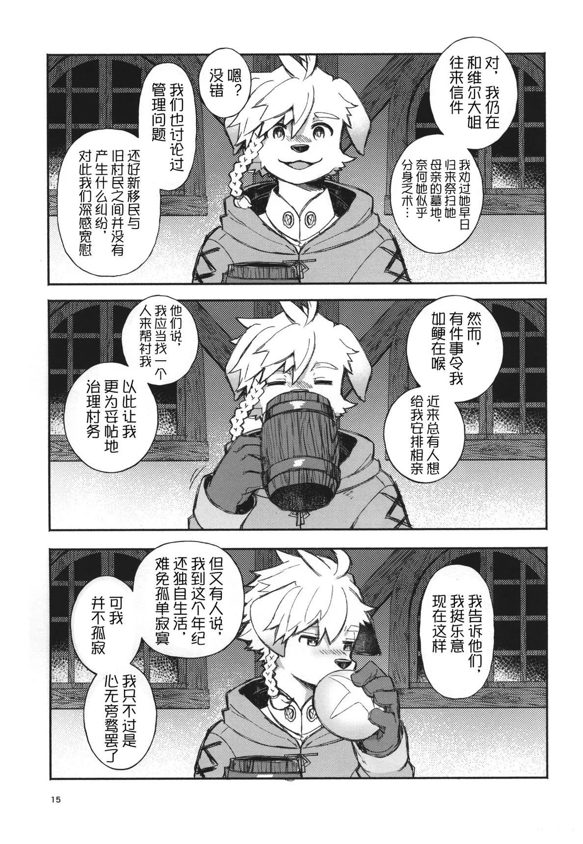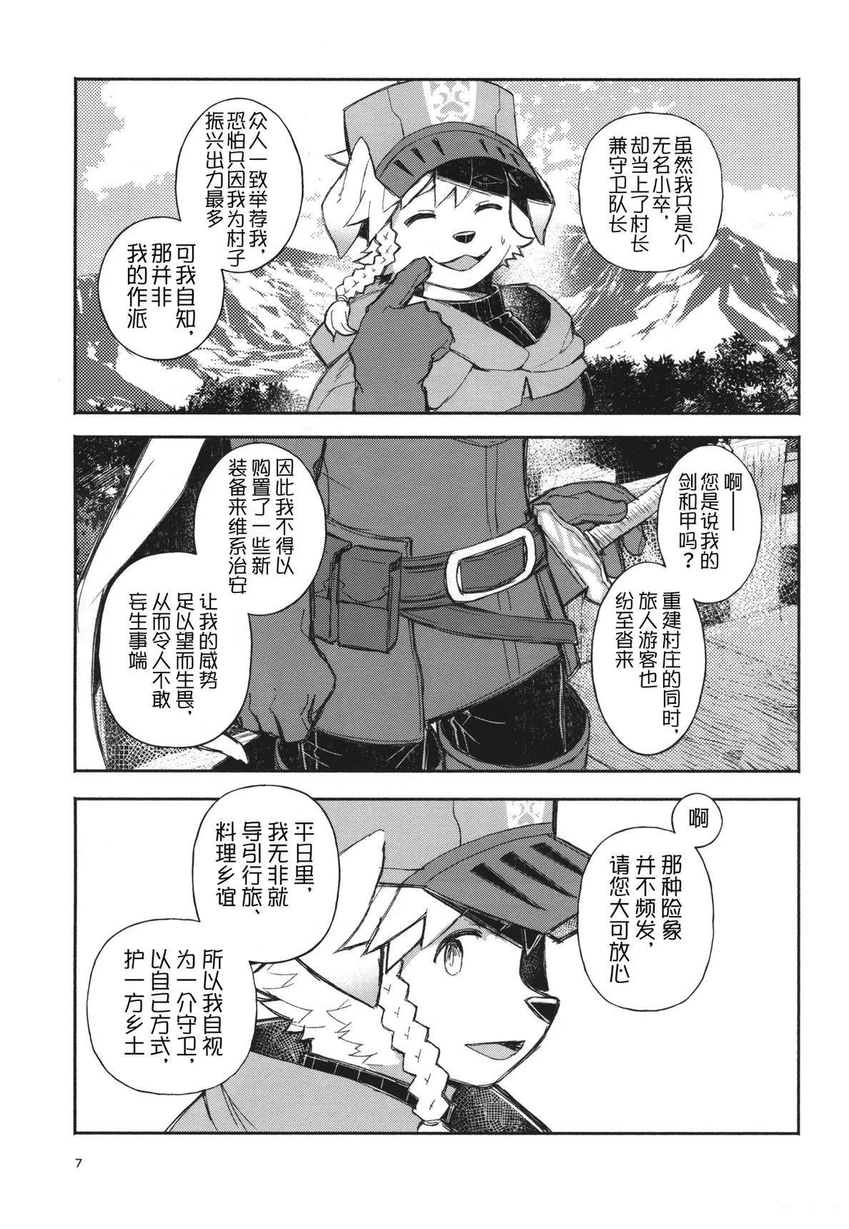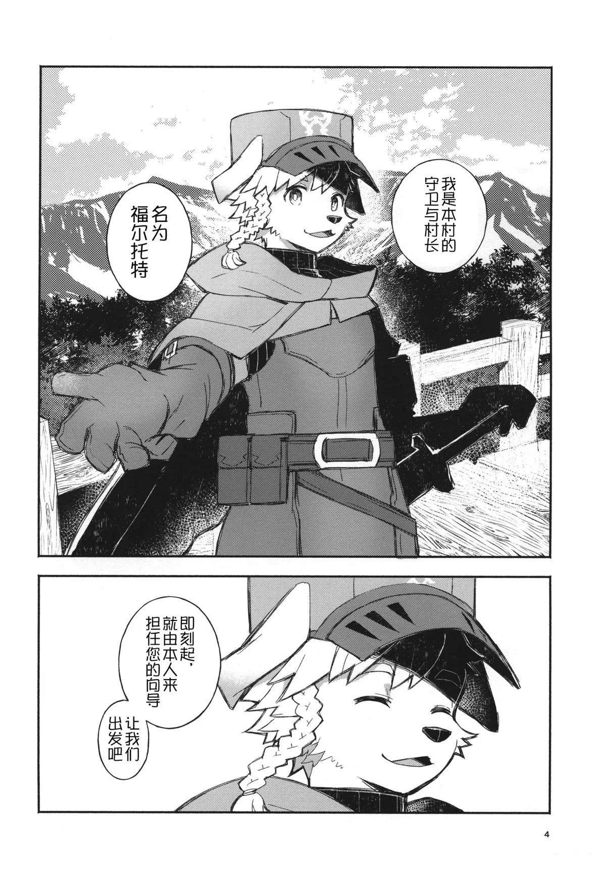 这是一部以第一人称视角的梦幻漫画,讲述了独自守护村庄的犬系兽人少年守卫与作为旅人的你在空无一人的村庄里共度三天时光的故事。