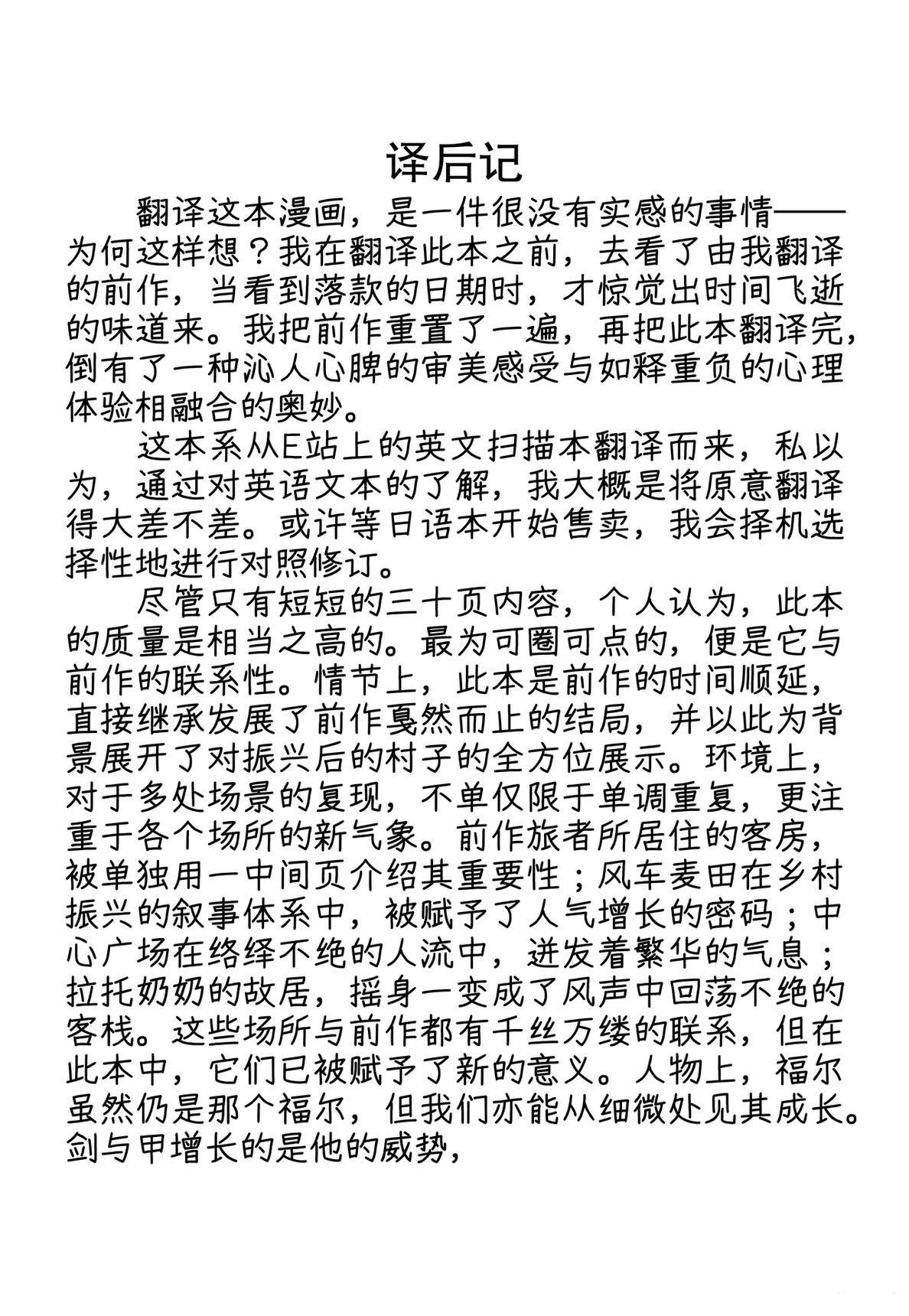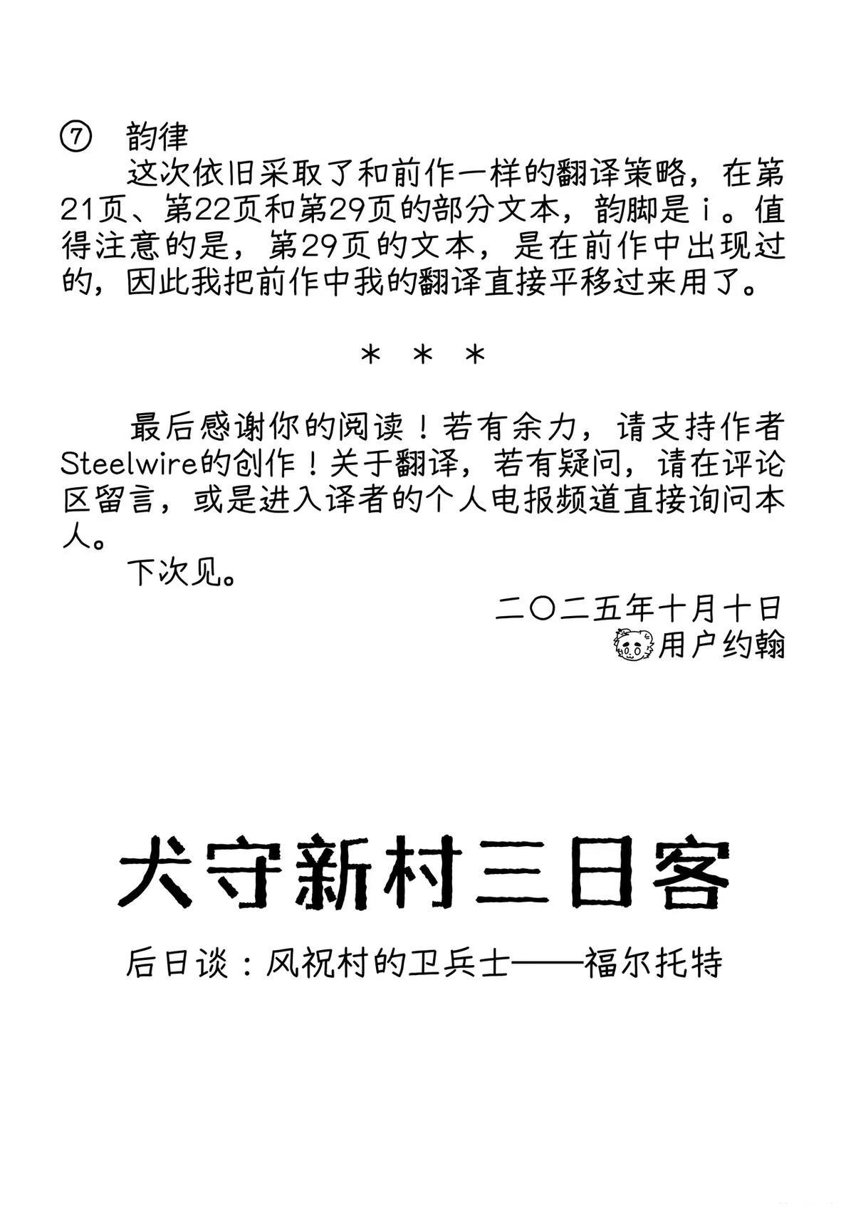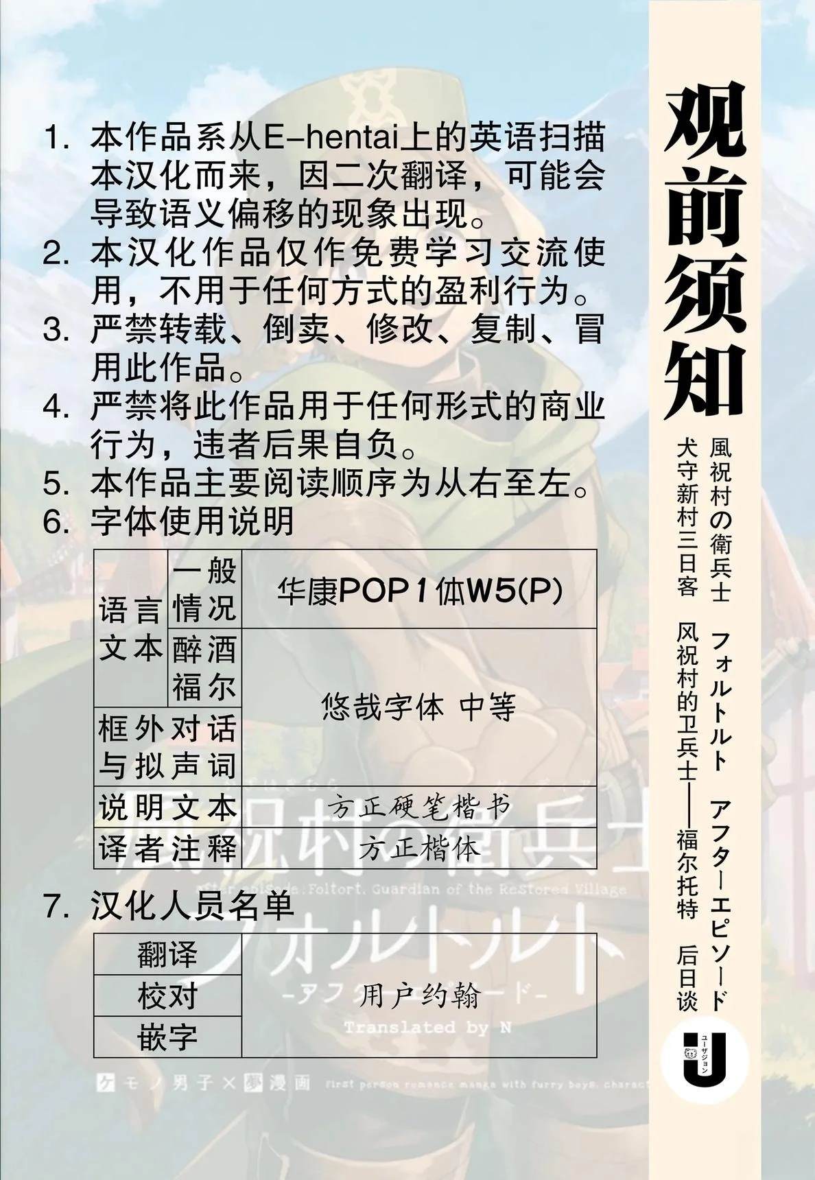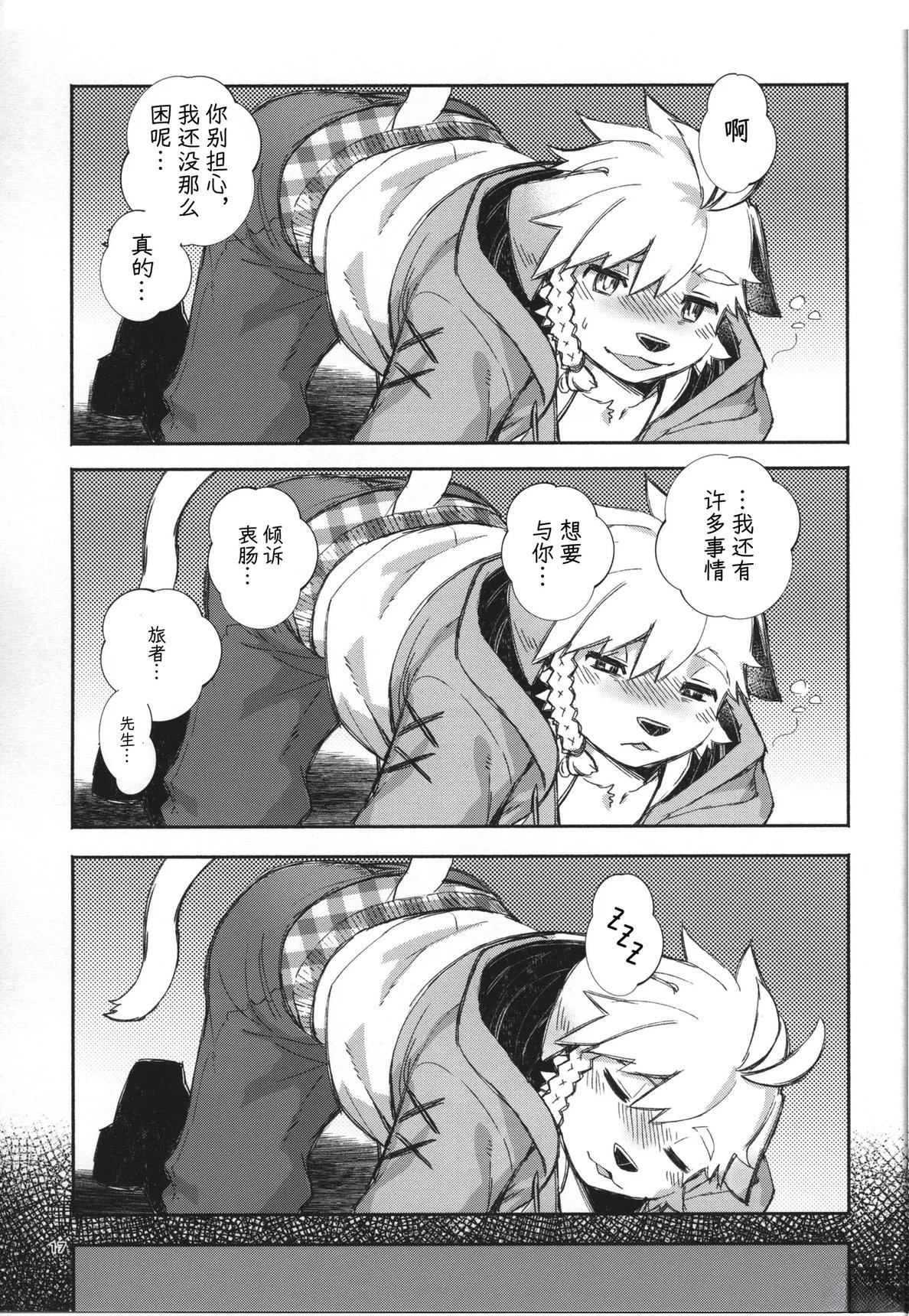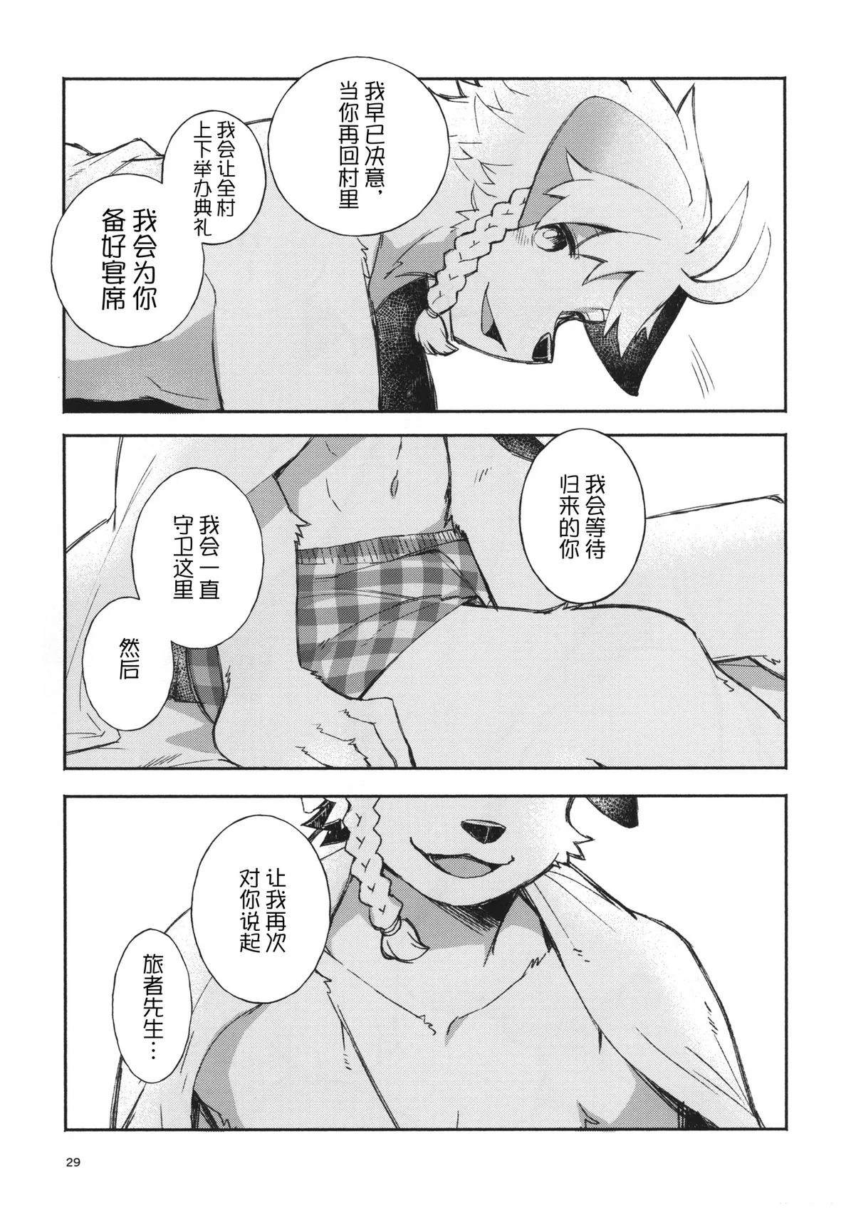 这是一部以第一人称视角的梦幻漫画,讲述了独自守护村庄的犬系兽人少年守卫与作为旅人的你在空无一人的村庄里共度三天时光的故事。