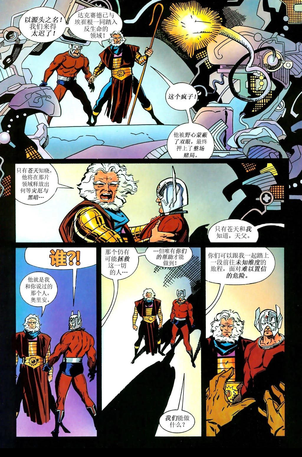 自古以来,新创世星与天启星的力量就一直处于对抗之中,争夺对宇宙的掌控权。唯有在面临宇宙彻底毁灭这一威胁时,天父与达克赛德才会结成联盟…而那个时刻终于到来,故事就在《宇宙奥德赛》中。密特隆终于解了神秘的反生命方程式的秘密——那正是生命的终极意义……整个宇宙的命运因此陷入未知。唯一的一线生机,是一[]一支仓促集结的英雄队伍,由宇宙中最伟大的战士组成:包括 超人、蝙蝠侠、绿灯侠、火星猎人、星火、奥里安及其他英雄……他们将在天父与达克赛德的共同监督下行动[-折叠]