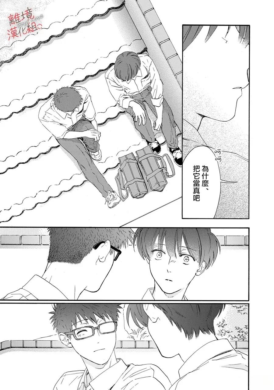 『希望你为我做的一切 都与我有相同的理由』 两人曾亲密无间到可以背著对方走路,可随著时间流逝,却渐行渐远。 而如今,他的感情已无法继续抑制——…… 这是一个高中男孩们间的酸酸甜甜、青春恋爱物语。