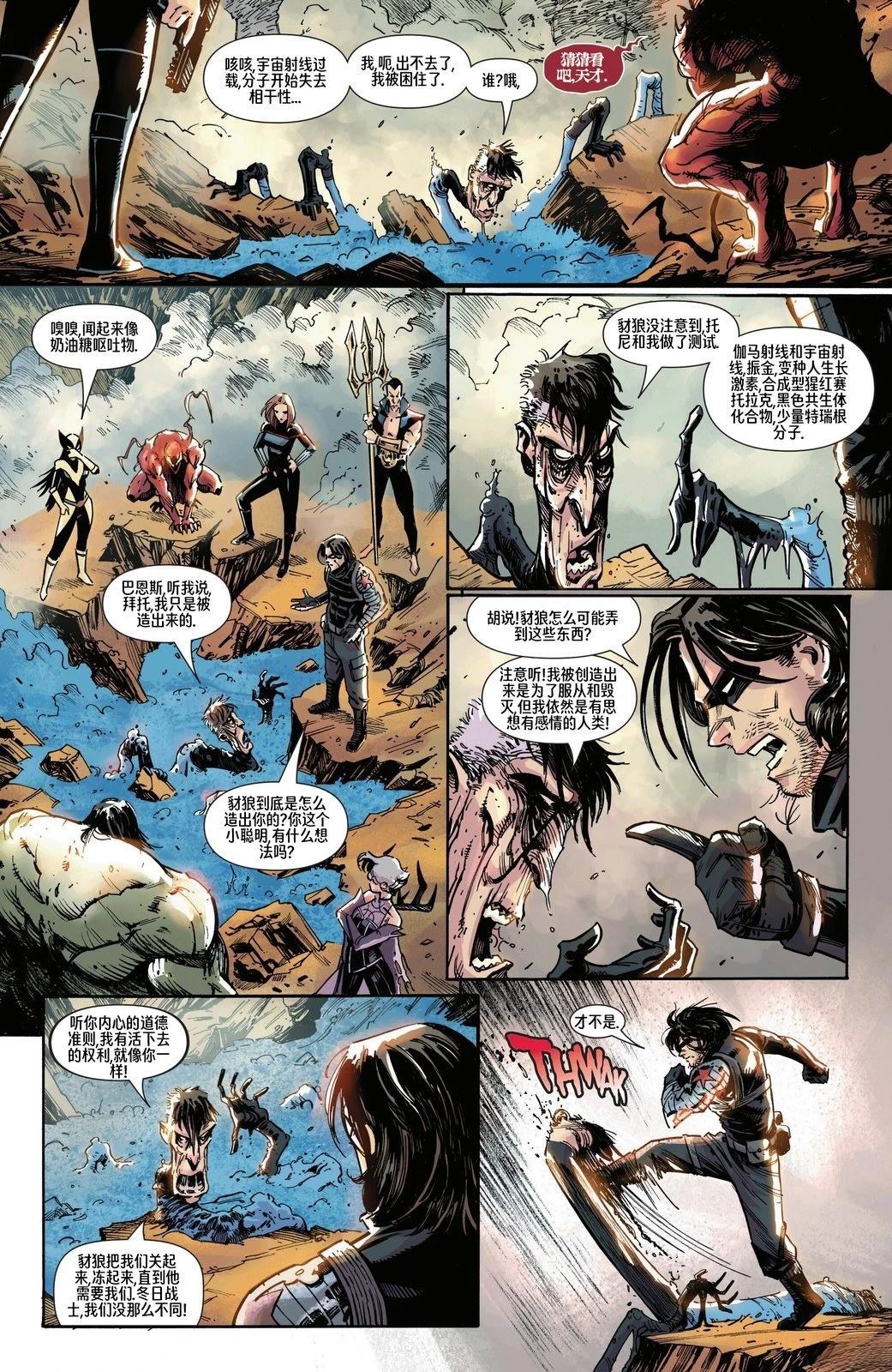 屠杀,绿巨人,纳摩,克莉,金刚狼,漫威宇宙中最危险的五个孤胆英雄和反英雄,没有什么能让他们联手……但巴基·巴恩斯和黑寡妇打算一搏。光照会的疯狂复制体正在威胁世界,如果他们找到合作的方法,将会像真正的光明会一样势不可挡。巴基和娜塔莎需要不惜一切代价消灭复制体的盟友——但与一支由杀手和怪物组成的队伍抗衡[]衡本身就危险重重。欢迎加入新雷霆特攻队——希望你能安然无恙[-折叠]