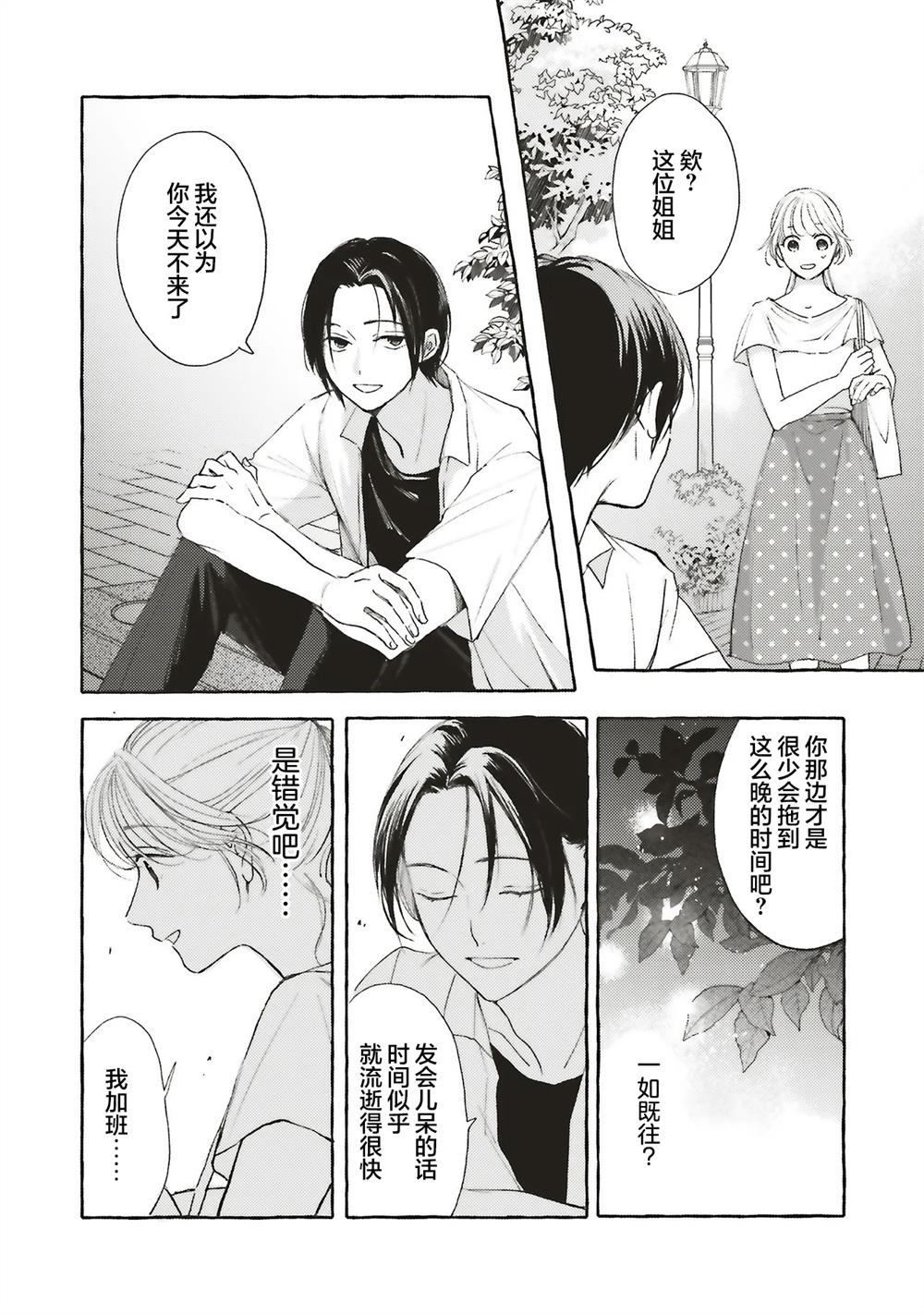 遥和其他人一样,是个平凡而疲惫的公司女社畜。她唯一的乐趣就是在下班回家的路上,去公园里的自动售货机买冰淇淋。随后,她也和经常在公园里遇到的一位年轻男子(自认为)聊些傻事。即便遥甚至不知道那人的名字,她也在为了和他聊天而努力工作著。但有一天,她发现他暗恋著一个女人——而她不知不觉中,也发现自己爱上了他[]他。这是一个发生在夜晚的公园的爱情故事,讲述了一段单相思的邂逅[-折叠]