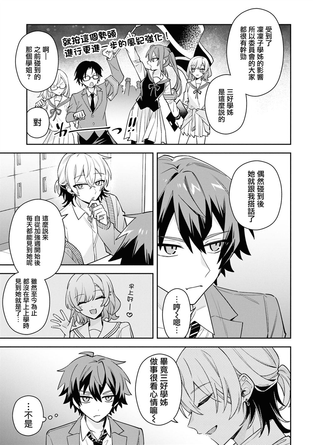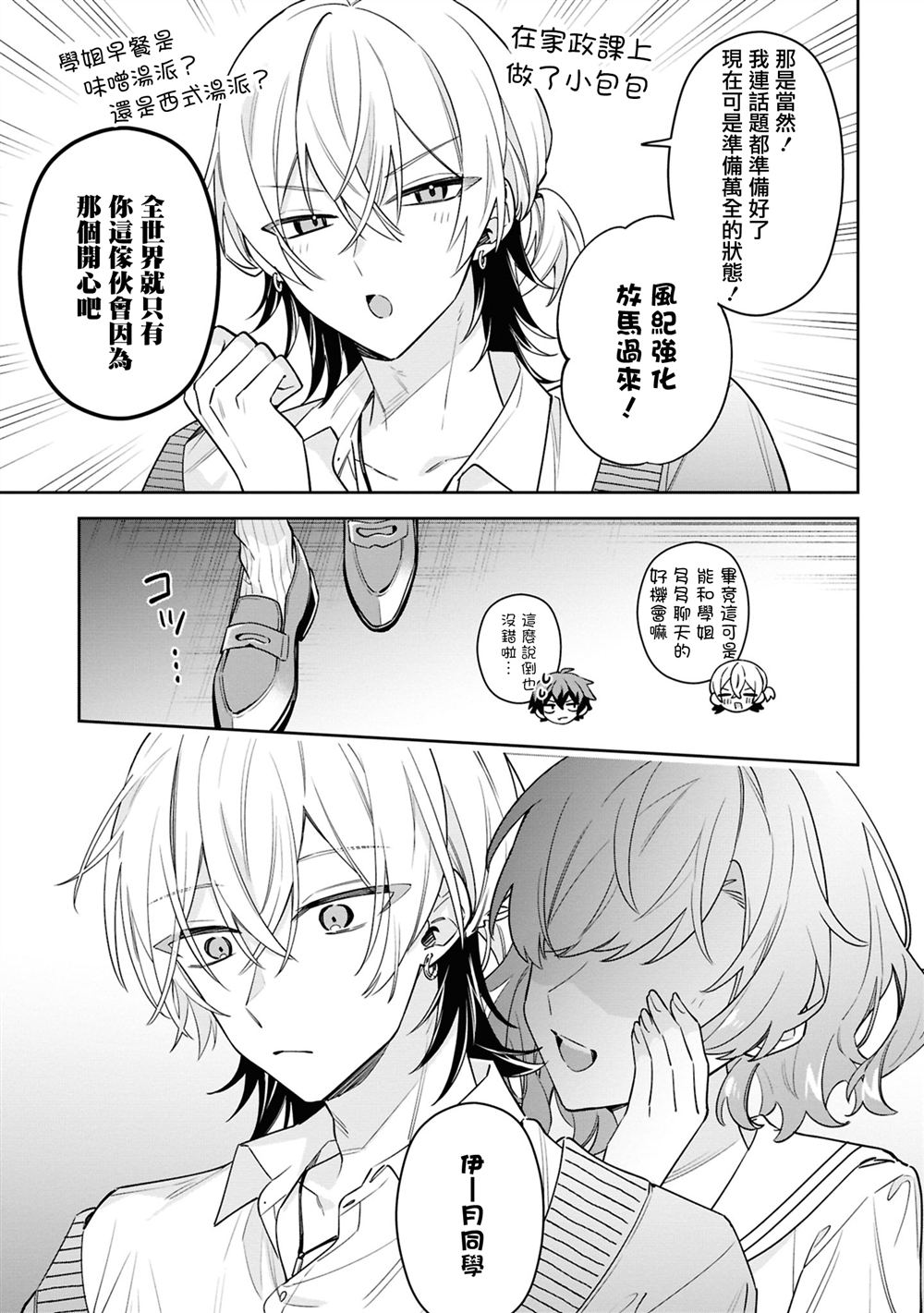 强势难应付的前辈让伊月同学乱了心神!?始了一场一心一意追前辈的恋爱欢喜闹剧。 伊月同学有喜欢的人。她就是——身为风纪委员长的凛凛子前辈。 为了能和她说上话,伊月同学故意不好好穿制服并做了各种努力,但凛凛子总是更胜一筹。 对待感情专一,却让人看了想给他加把劲的伊月同学,他的青春恋爱戏剧由此幕[]幕[-折叠]