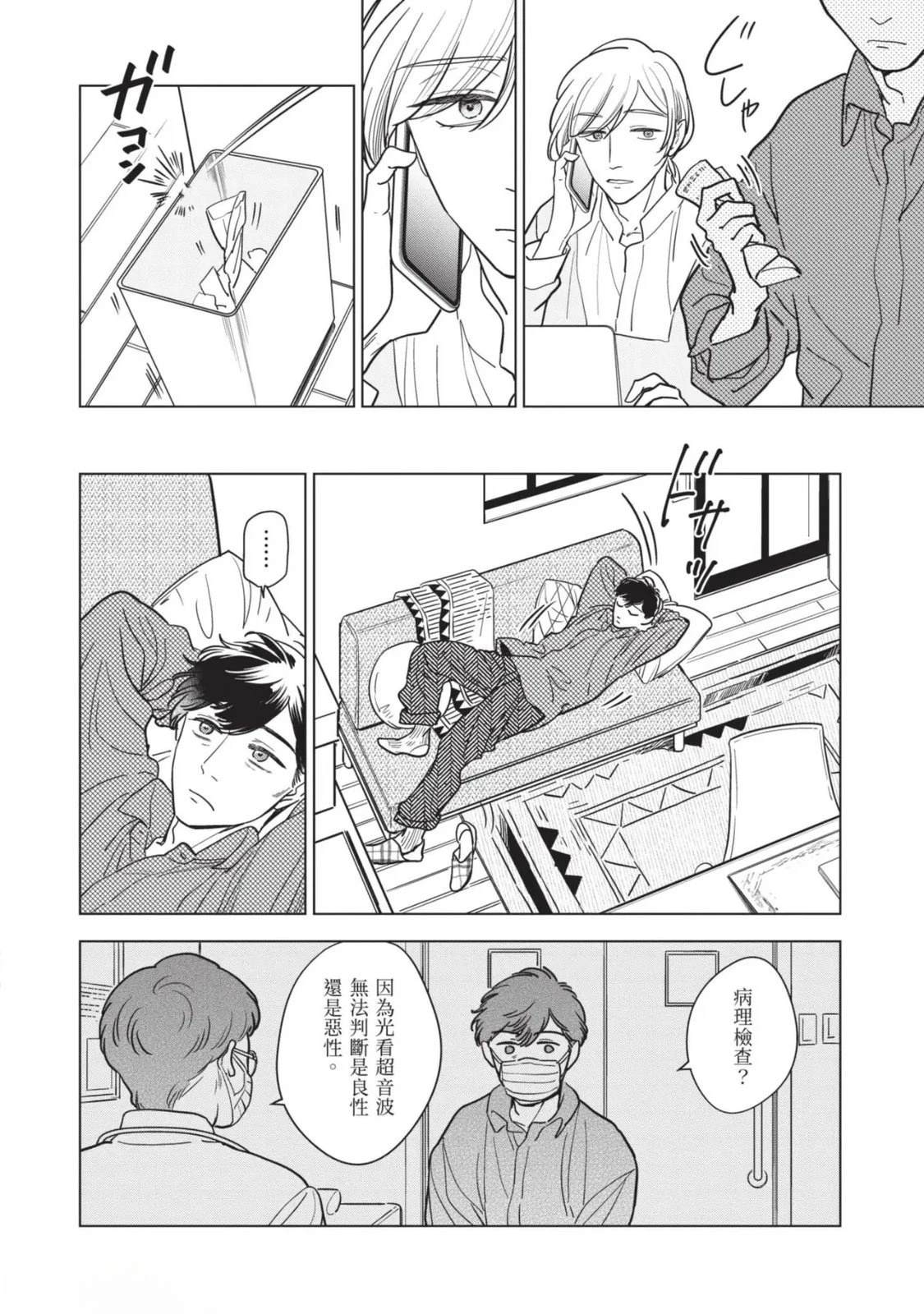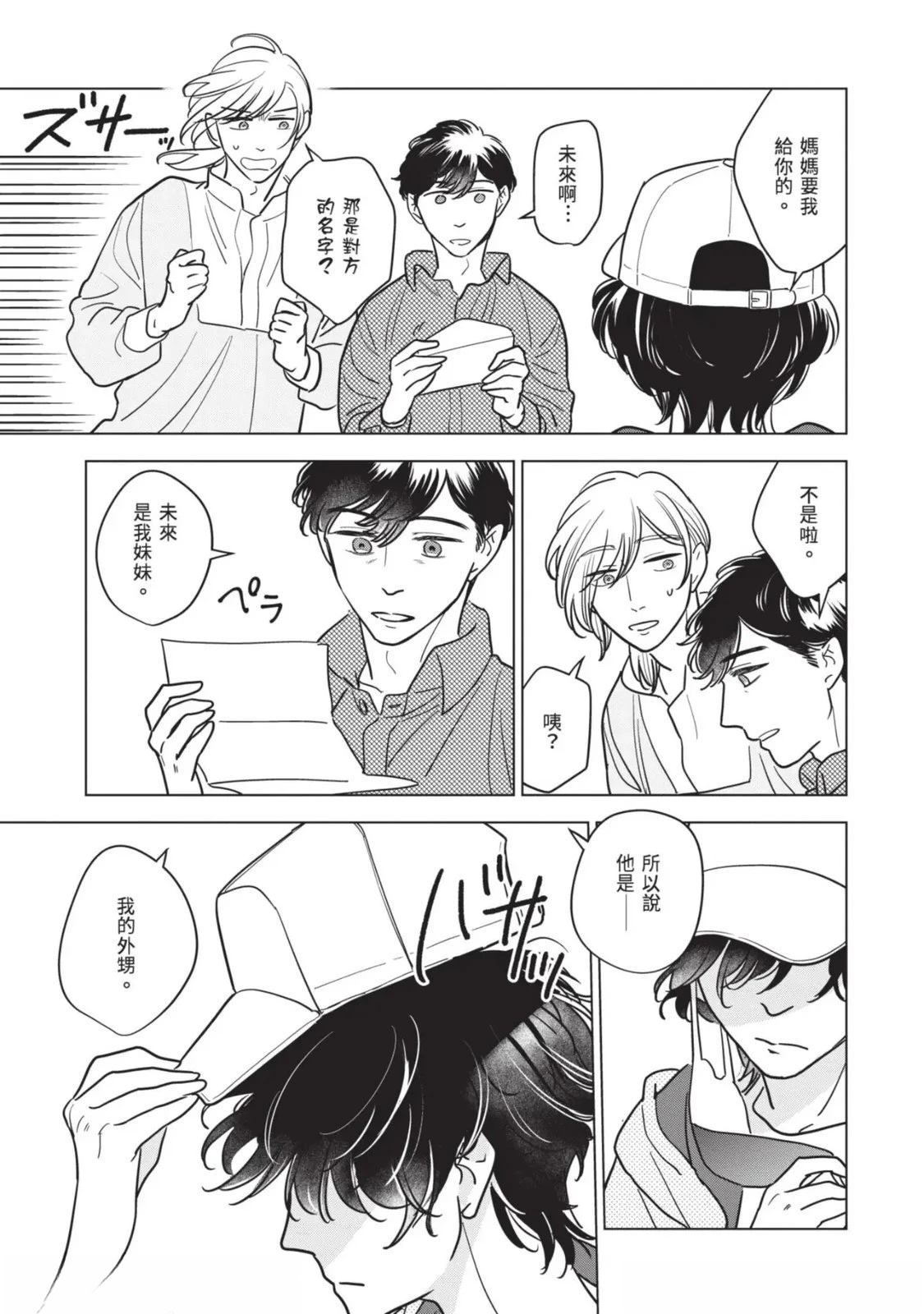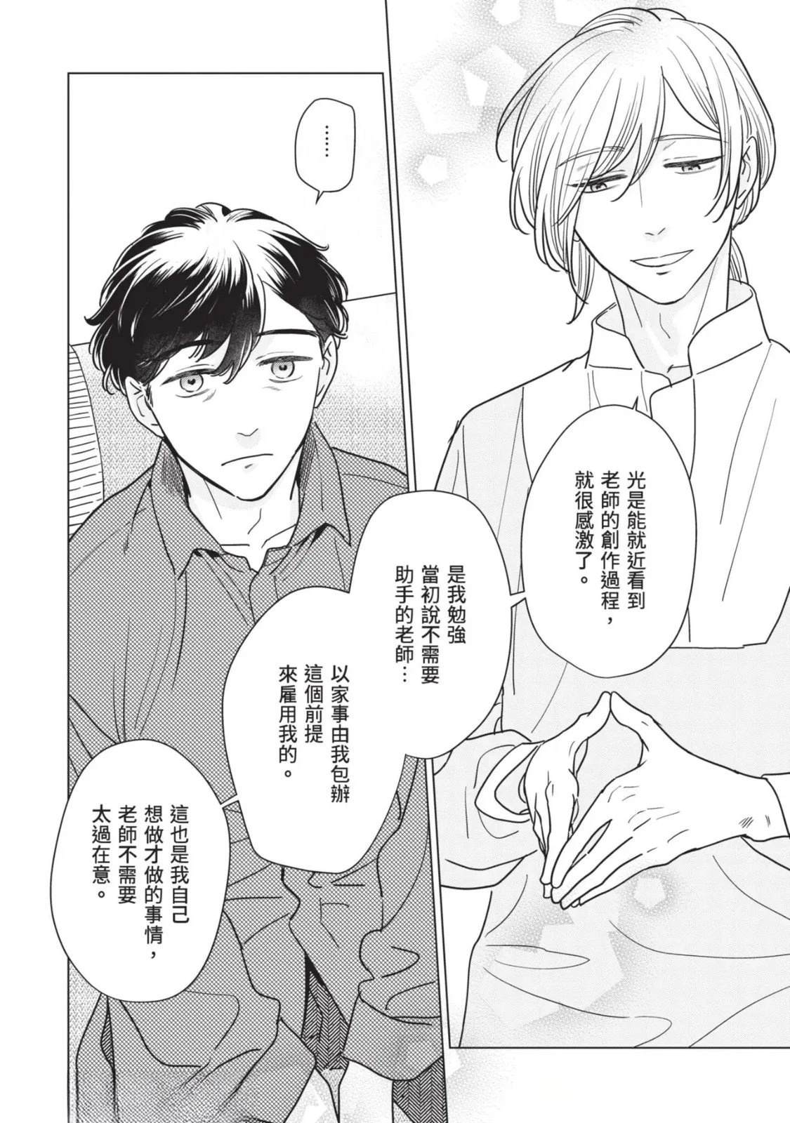 接收到去医院做详细检查的建议,绘本作家.藤咲在隐约对死亡感到不安的同时,得知助手立花参加的竞赛落选。私底下被立花吸引的藤咲为了立花的将来著想,便提议要改变生活型态。就在他们谈论的途中,他的外甥.苍突然造访,并告知藤咲的妹妹,也就是苍的母亲.未来将要去国外的消息。藤咲决定这期间要让苍住在家里,不过立花[]花却提出质疑,问他是否有办法和高中生单独两人生活。无法反驳的藤咲最后决定三人一起生活—[-折叠]