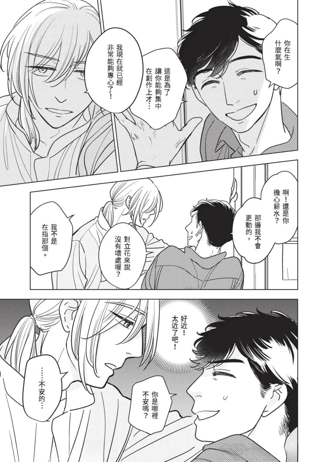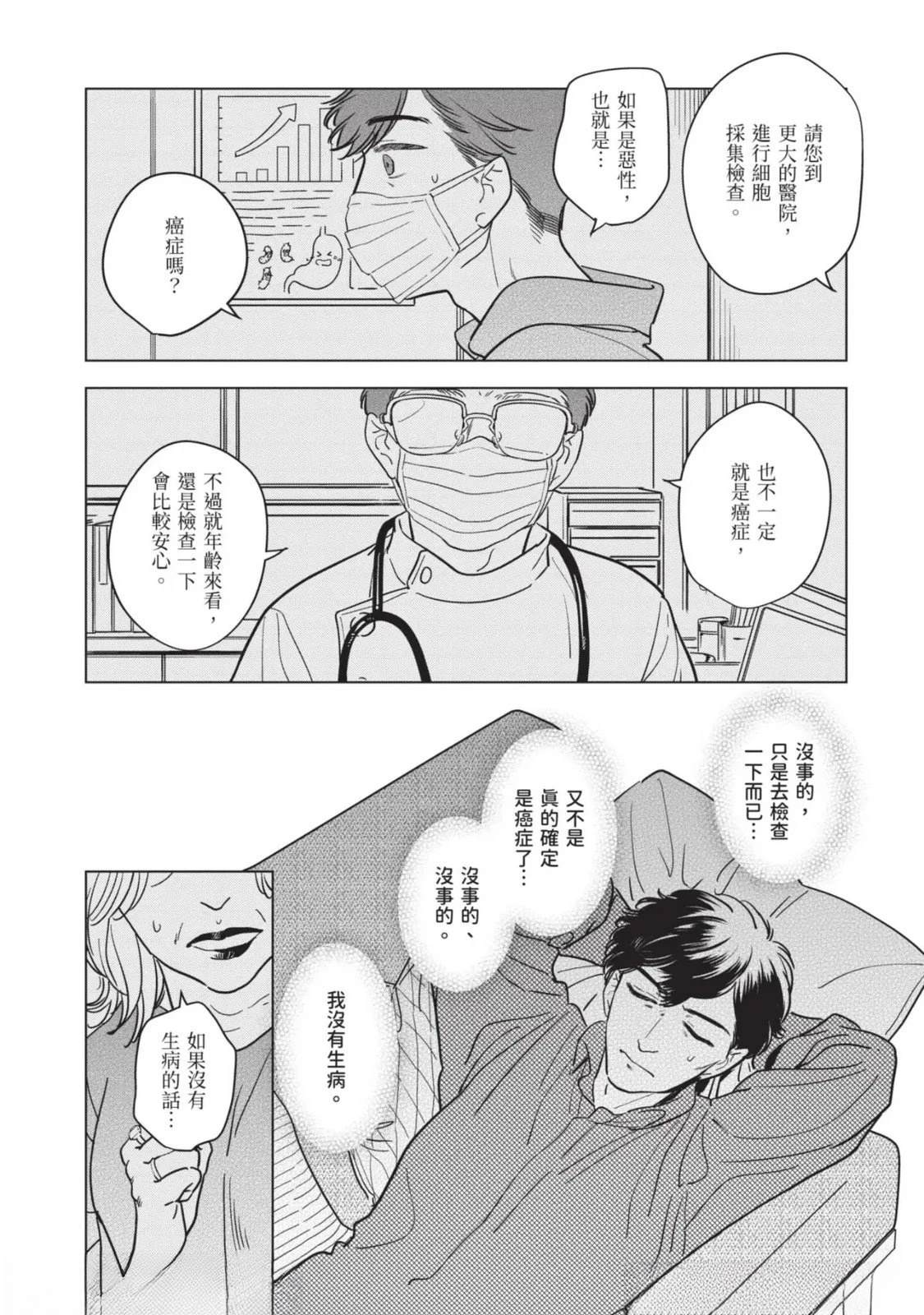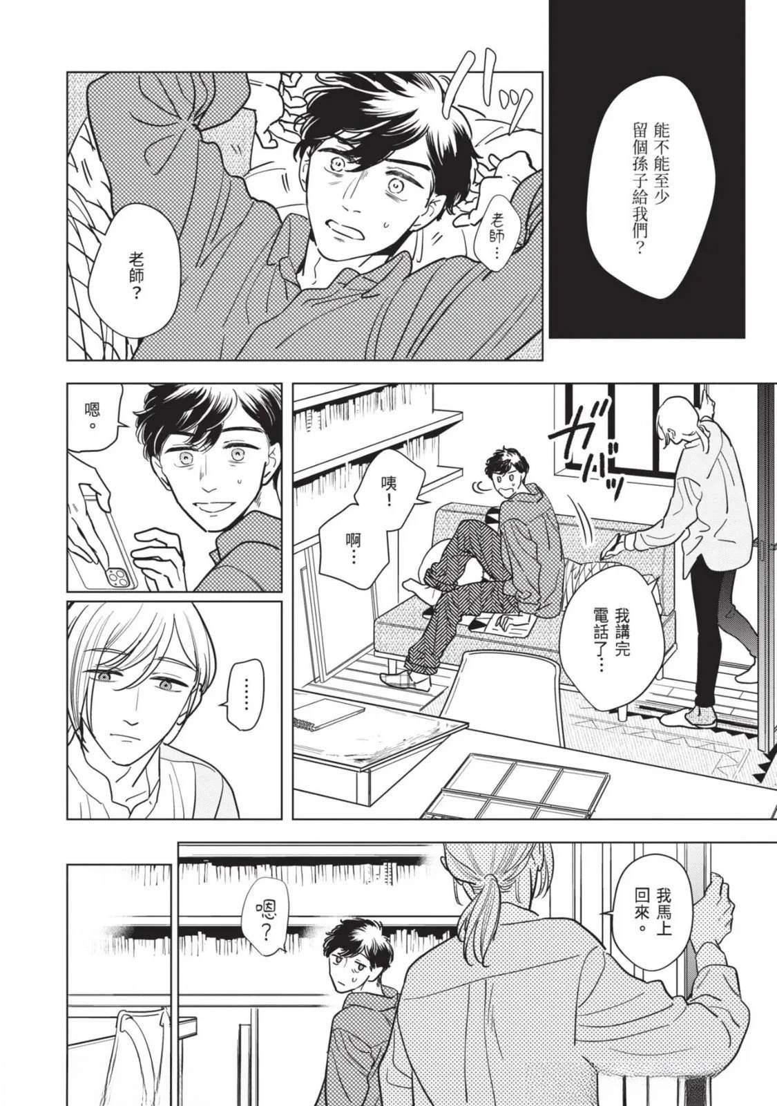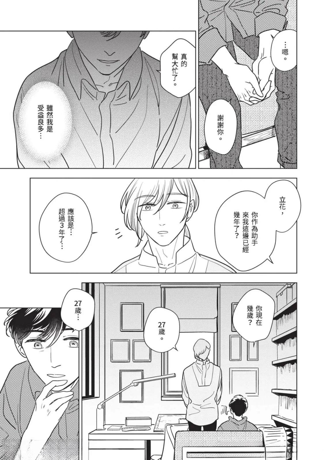 接收到去医院做详细检查的建议,绘本作家.藤咲在隐约对死亡感到不安的同时,得知助手立花参加的竞赛落选。私底下被立花吸引的藤咲为了立花的将来著想,便提议要改变生活型态。就在他们谈论的途中,他的外甥.苍突然造访,并告知藤咲的妹妹,也就是苍的母亲.未来将要去国外的消息。藤咲决定这期间要让苍住在家里,不过立花[]花却提出质疑,问他是否有办法和高中生单独两人生活。无法反驳的藤咲最后决定三人一起生活—[-折叠]
