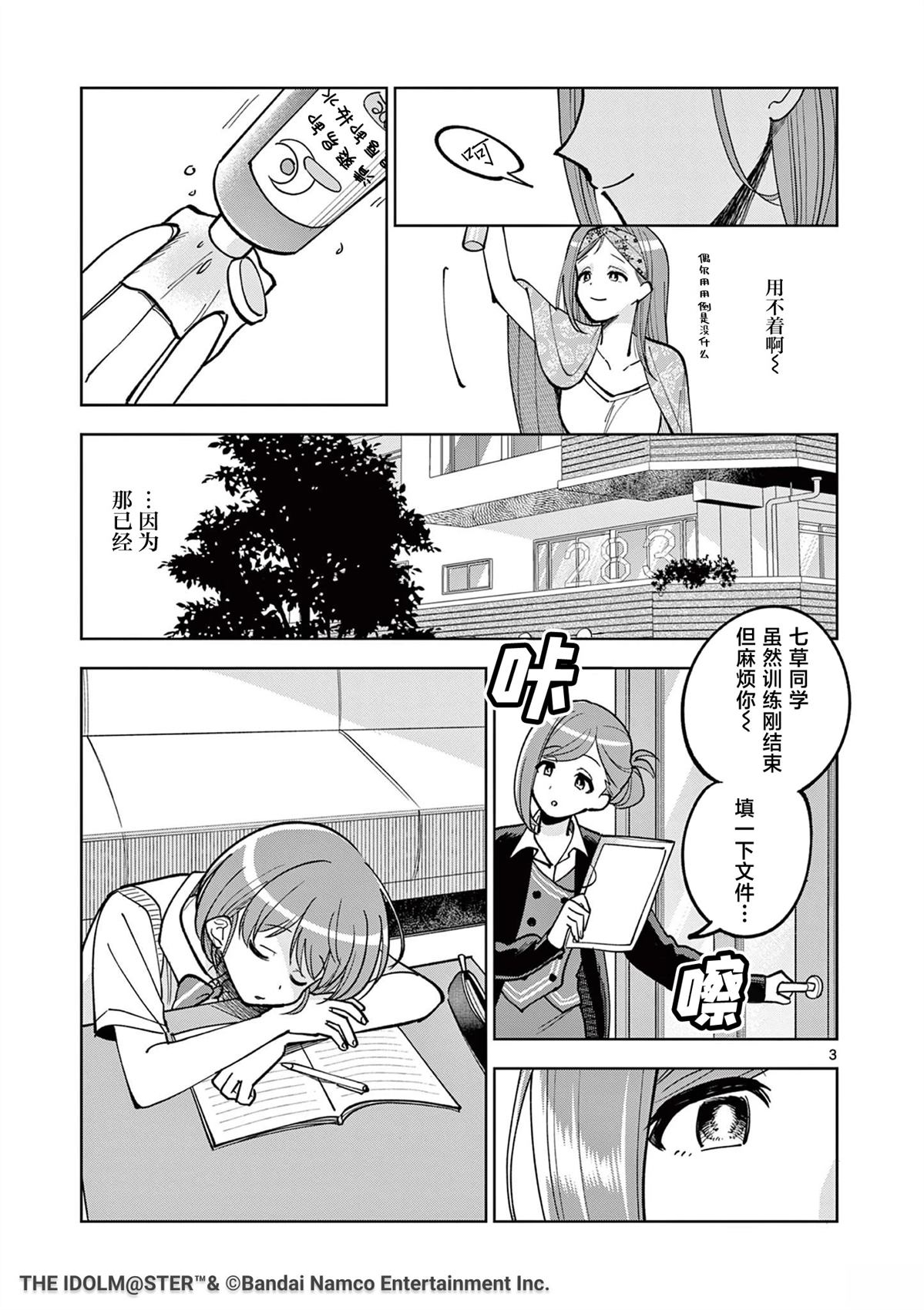 「283Prodeuction」是一家聚集著许多个性丰富的小偶像,热热闹闹宛如「家」一般的小小事务所。回复电话、制作文件、核算经费……打理著这些「培育」之外的工作,支持璀璨闪耀著的小偶像们的即是事务员。283Pro的事务员·七草叶月。作为一名事务员、一位女儿、一位姐姐,她积累下来的每一天和每一份思念[]念,都会成为使小偶像们「闪耀」的光芒——以事务员的视角讲述的全新「偶像大师 闪耀色彩」由此幕[-折叠]