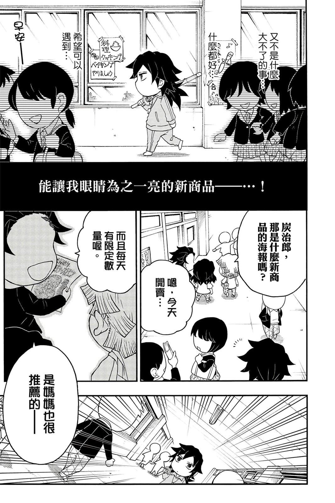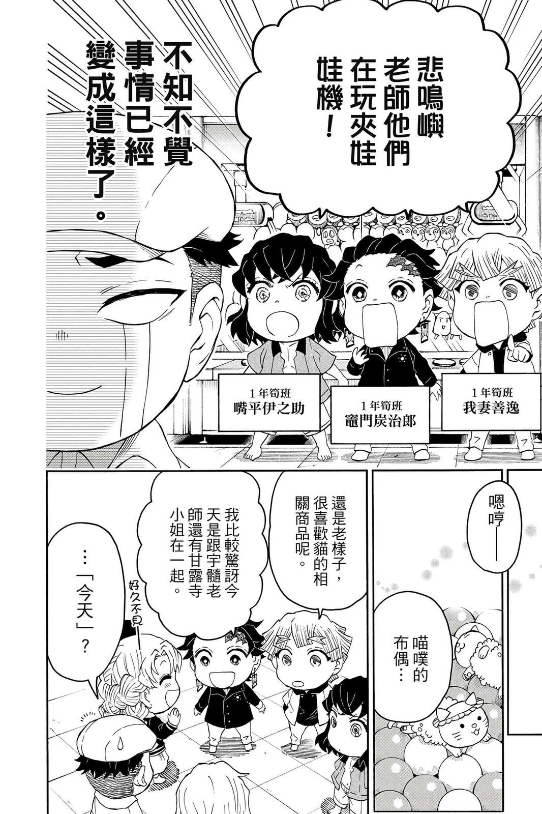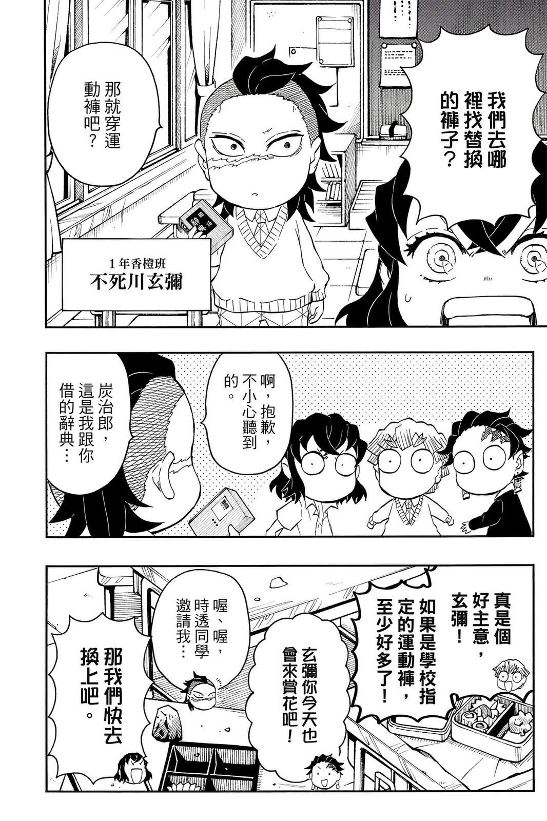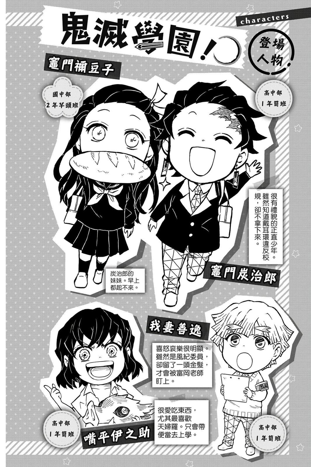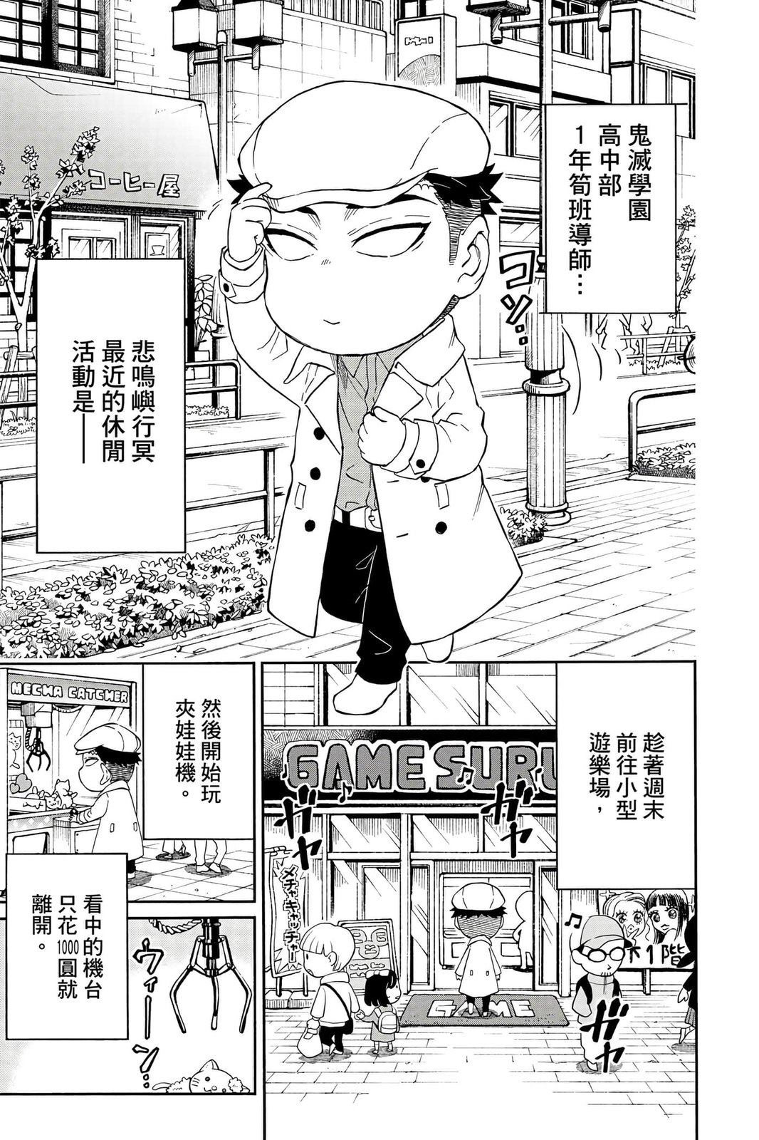 原本只是「鬼灭之刃」单行本里的附录,现在由帆上夏希老师操刀,让原本的角色成了老师跟学生。故事舞台是一所国小国中高中一贯的私立学校?鬼灭学园,一始就是炭治郎跟善逸都迟到,为了顺利进入由体育老师?富冈所看守的校门,惹出许多笑料。