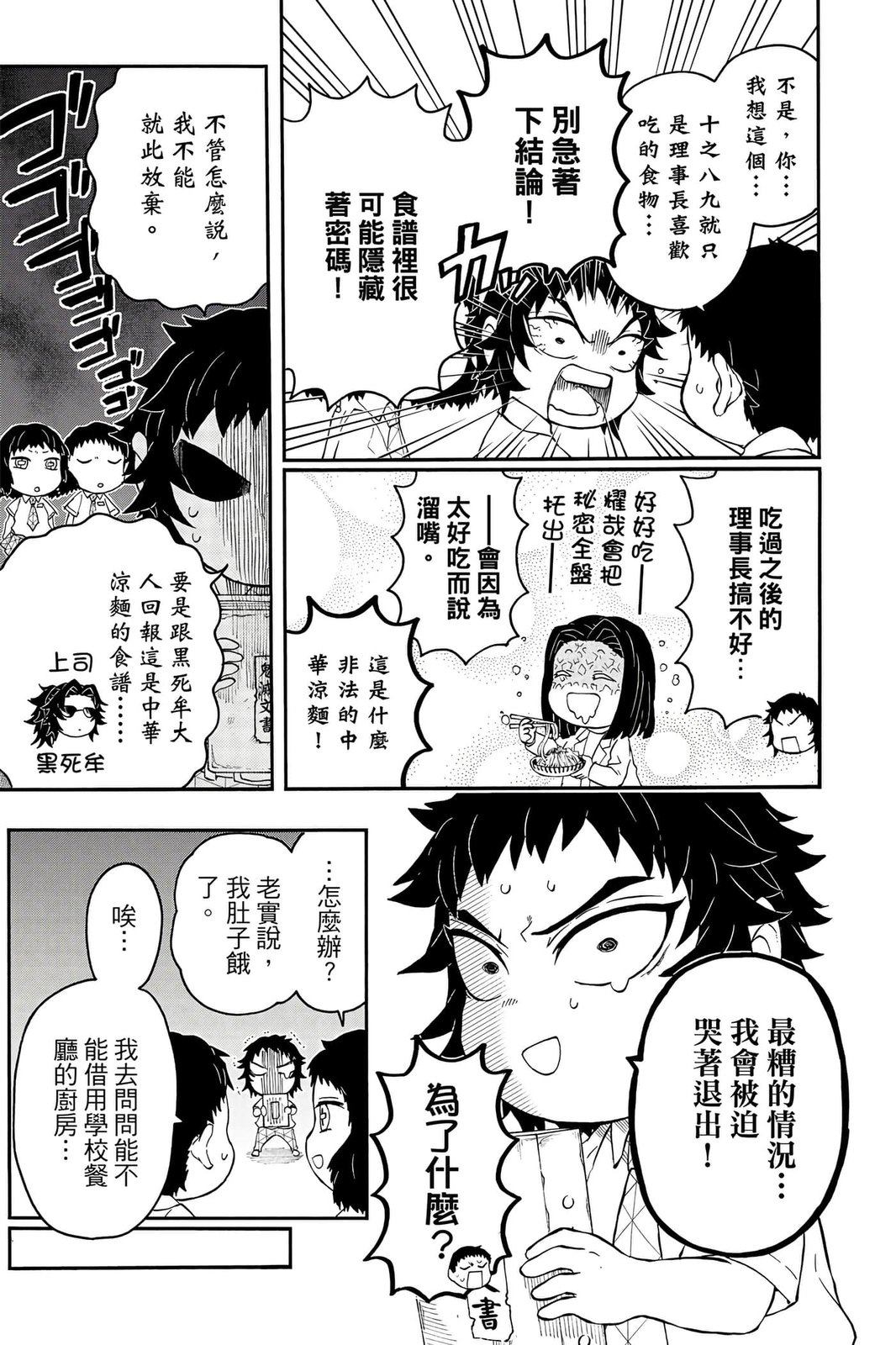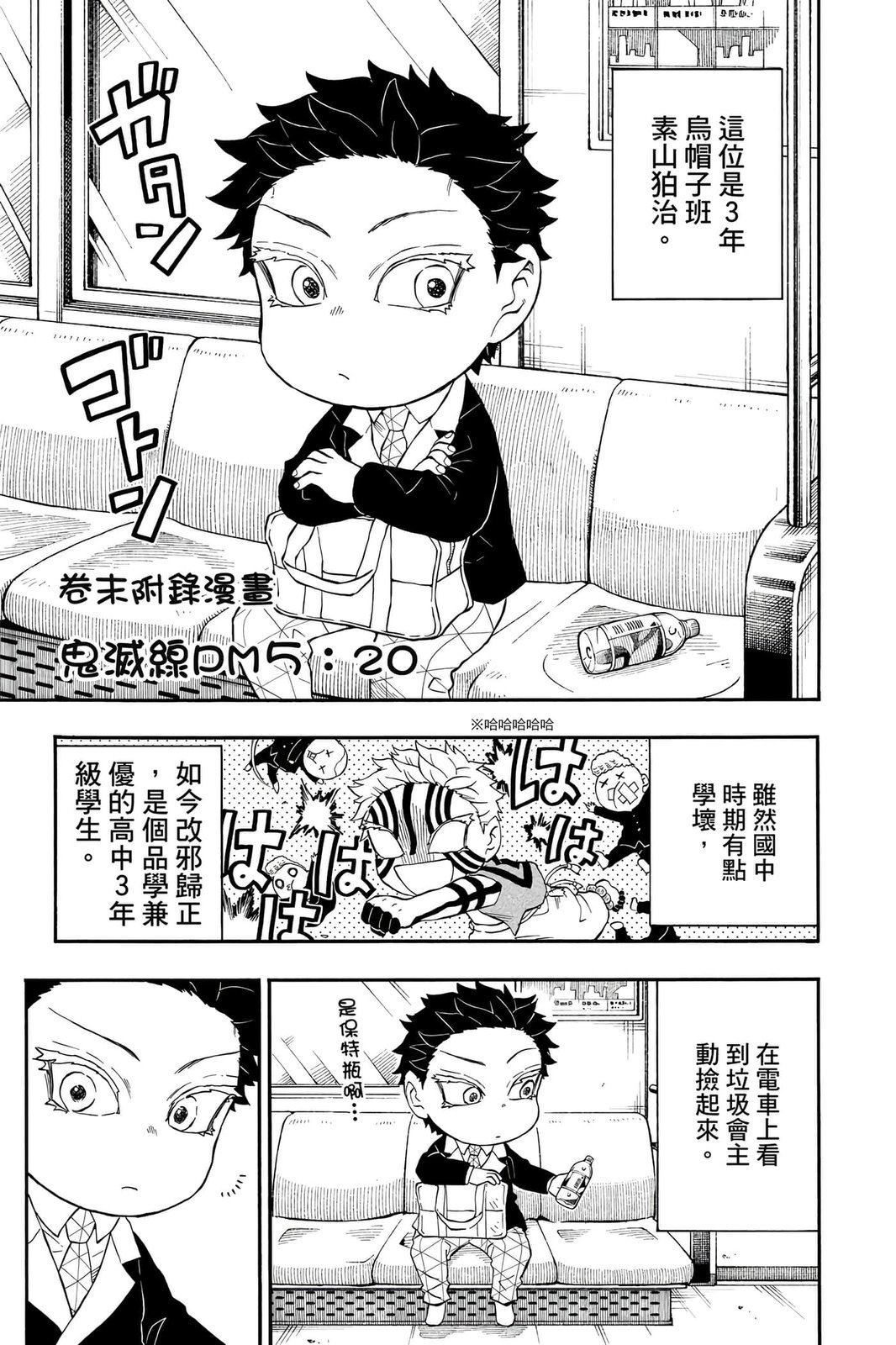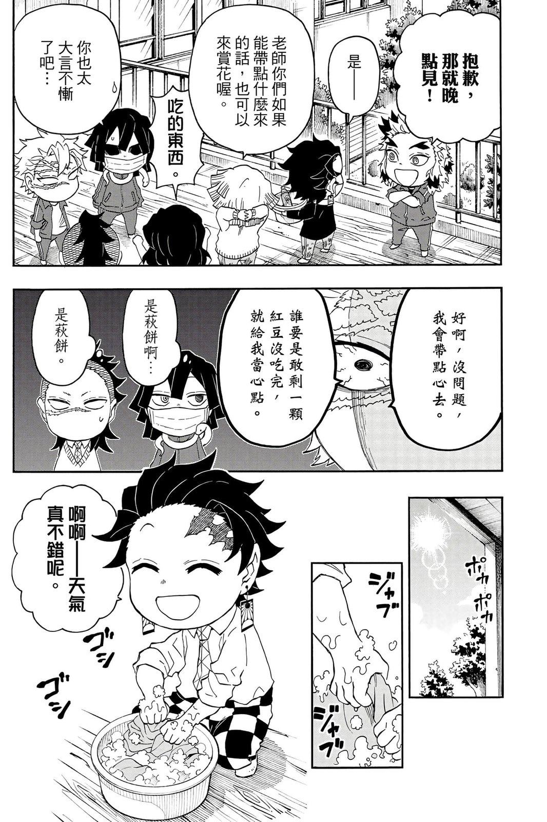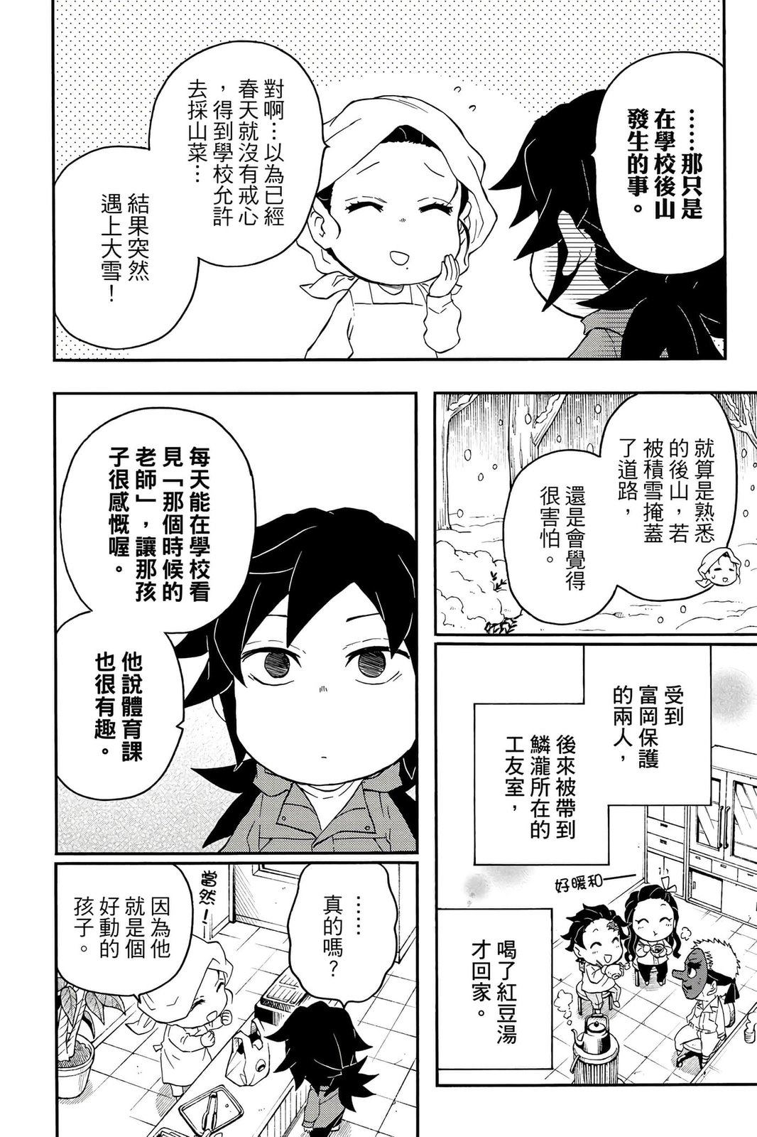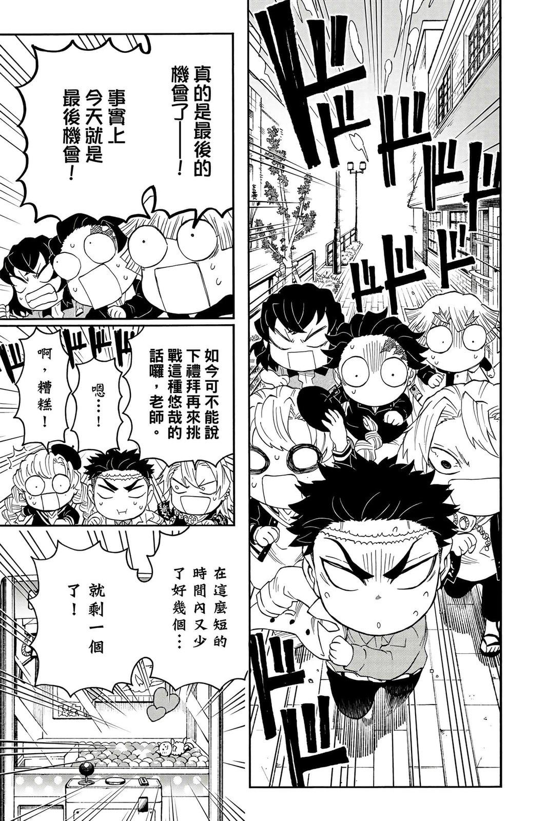 原本只是「鬼灭之刃」单行本里的附录,现在由帆上夏希老师操刀,让原本的角色成了老师跟学生。故事舞台是一所国小国中高中一贯的私立学校?鬼灭学园,一始就是炭治郎跟善逸都迟到,为了顺利进入由体育老师?富冈所看守的校门,惹出许多笑料。