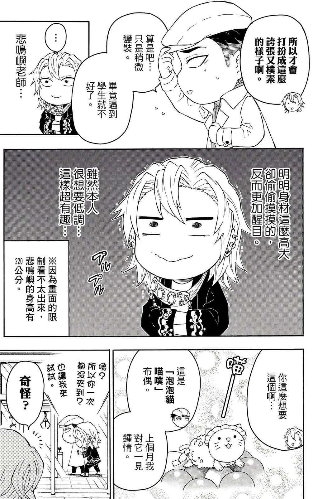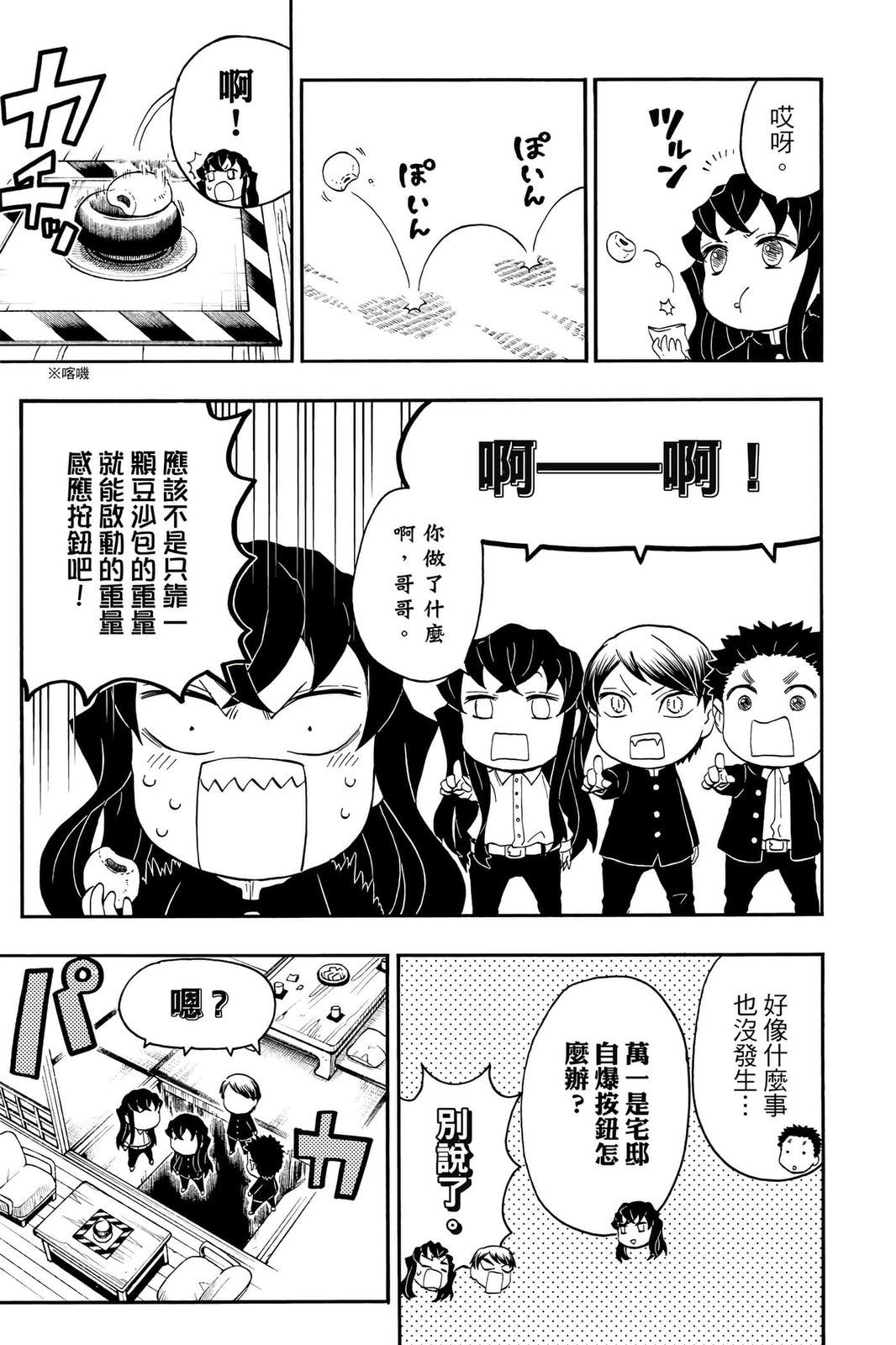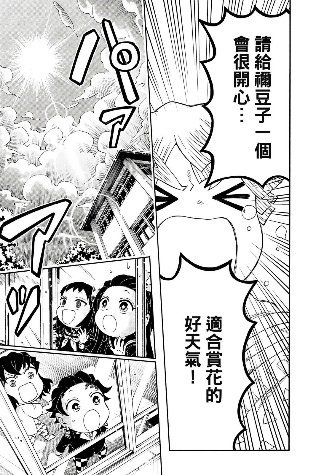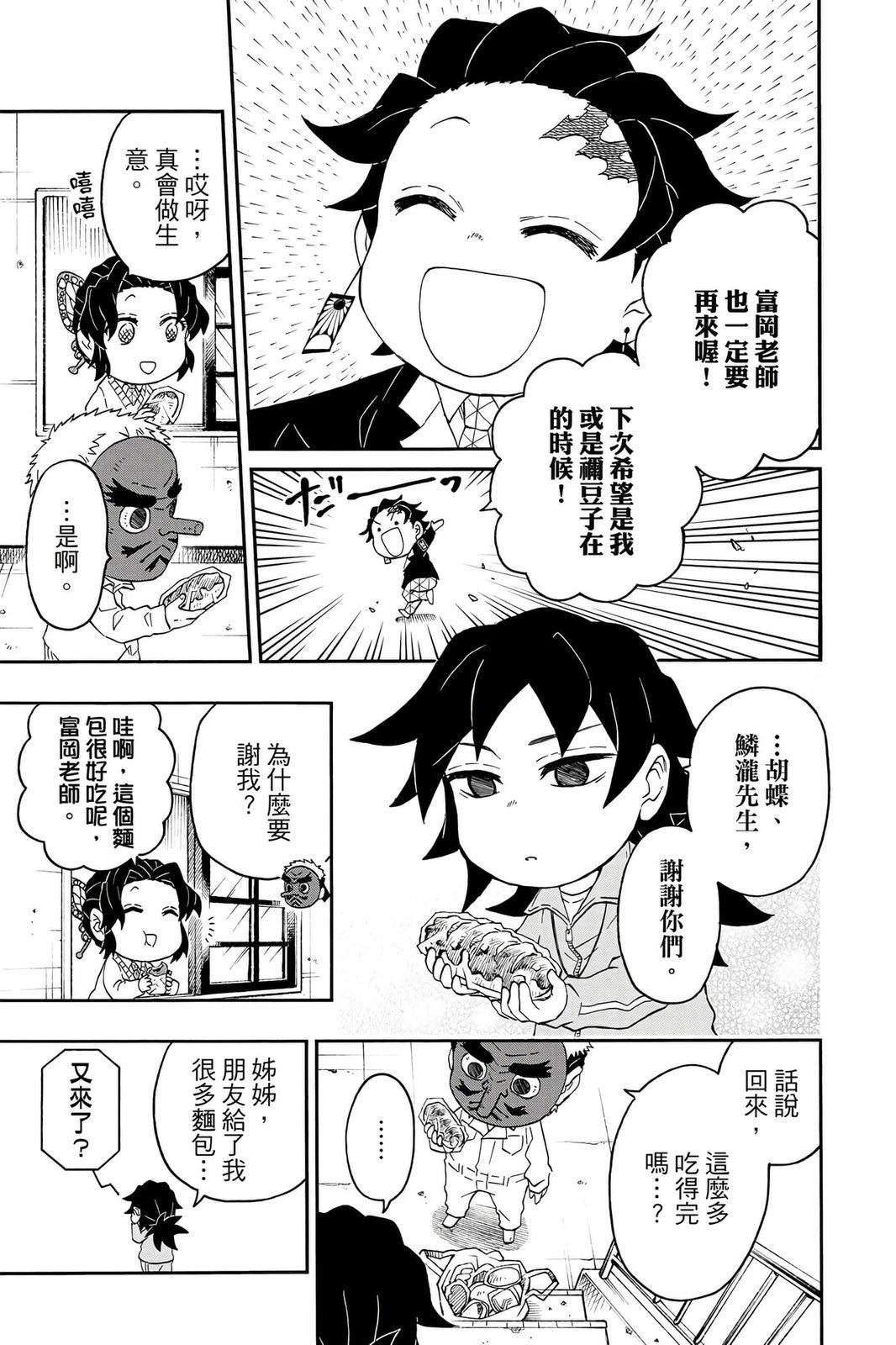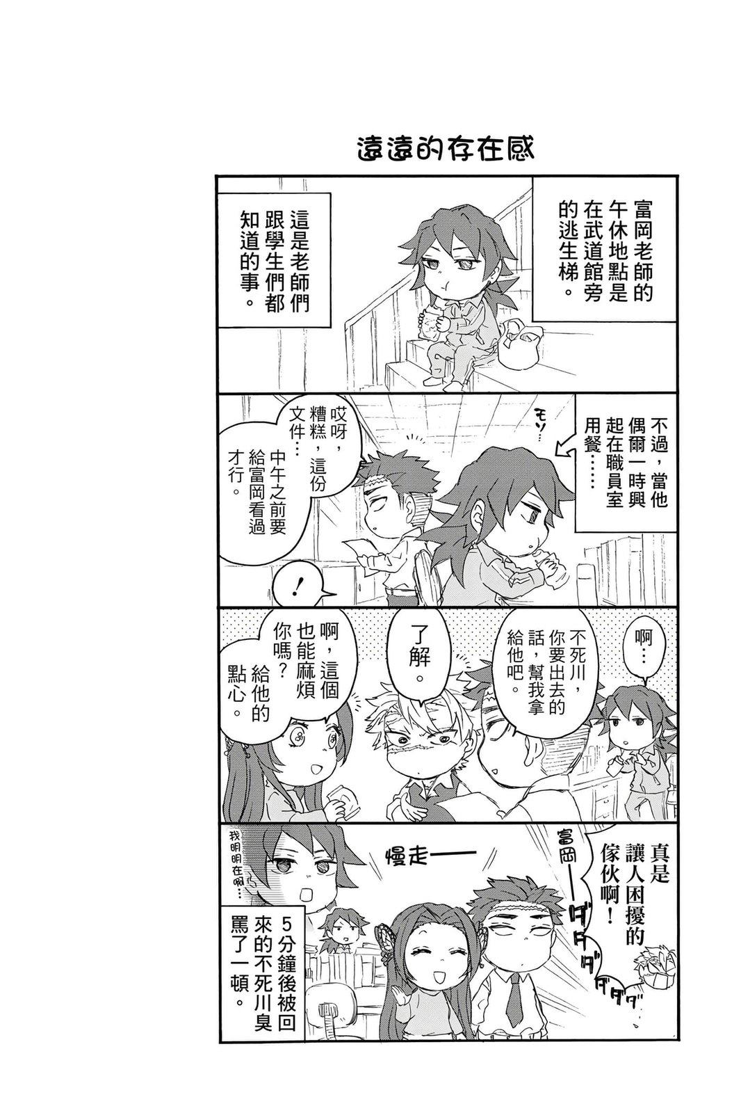 原本只是「鬼灭之刃」单行本里的附录,现在由帆上夏希老师操刀,让原本的角色成了老师跟学生。故事舞台是一所国小国中高中一贯的私立学校?鬼灭学园,一始就是炭治郎跟善逸都迟到,为了顺利进入由体育老师?富冈所看守的校门,惹出许多笑料。