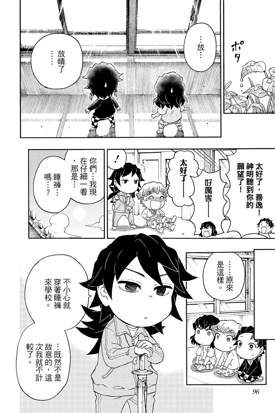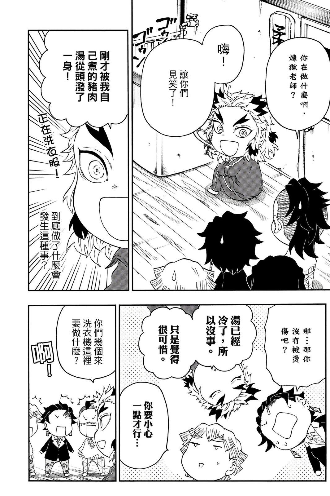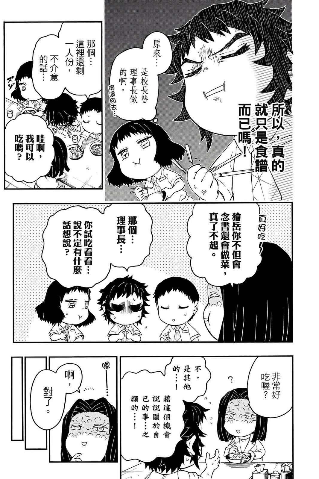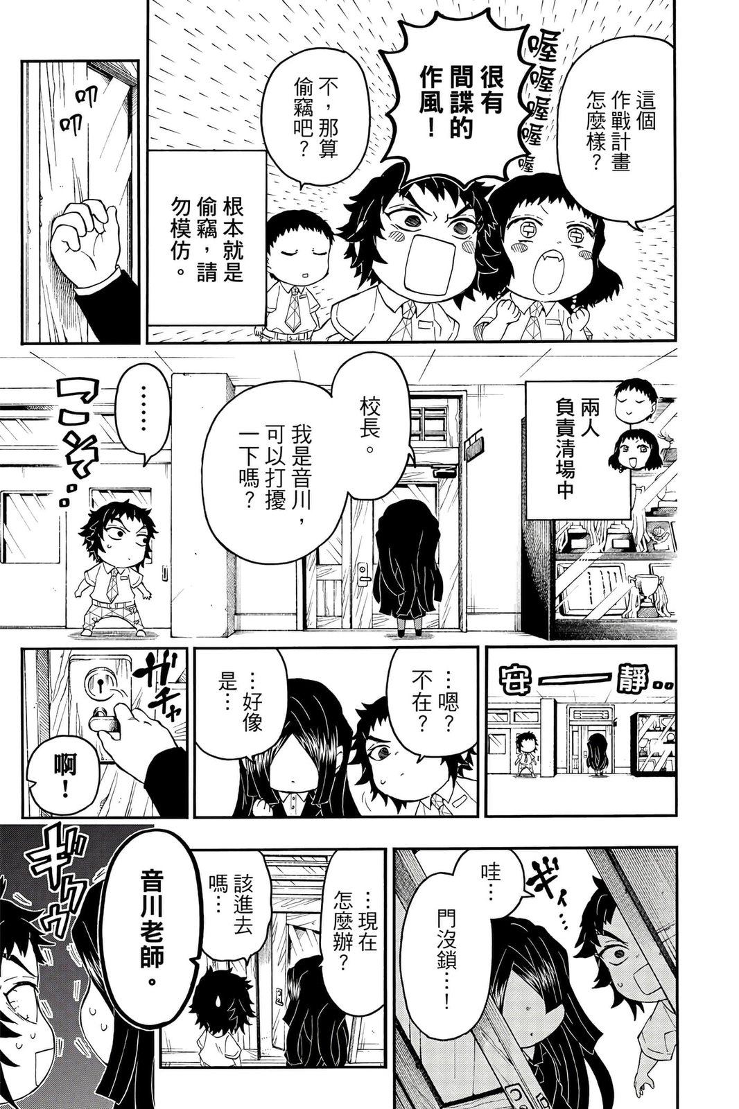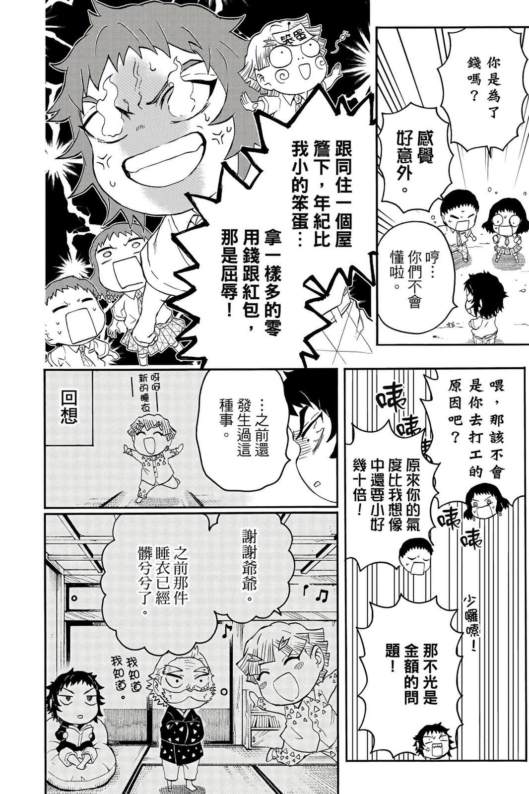 原本只是「鬼灭之刃」单行本里的附录,现在由帆上夏希老师操刀,让原本的角色成了老师跟学生。故事舞台是一所国小国中高中一贯的私立学校?鬼灭学园,一始就是炭治郎跟善逸都迟到,为了顺利进入由体育老师?富冈所看守的校门,惹出许多笑料。