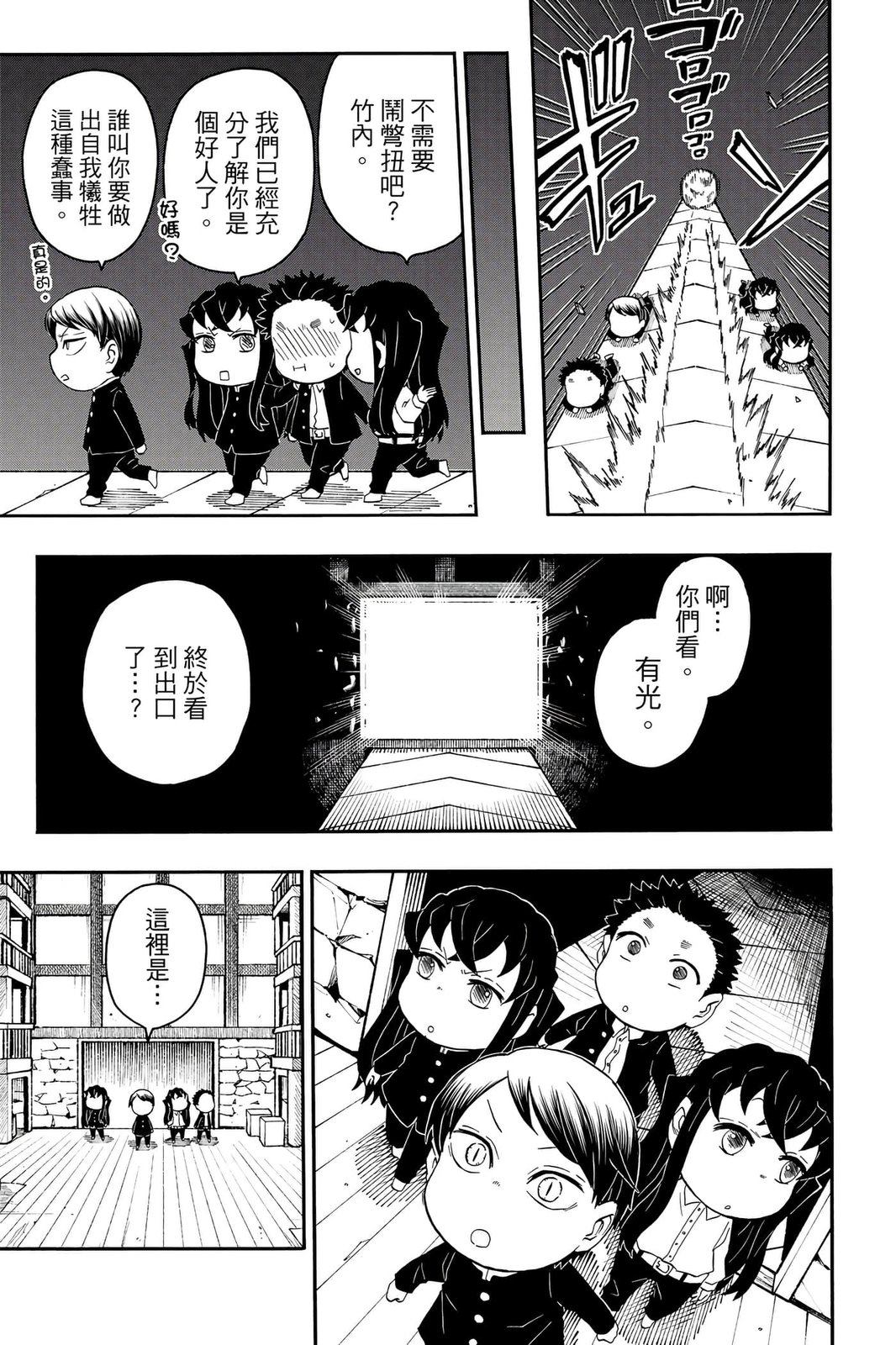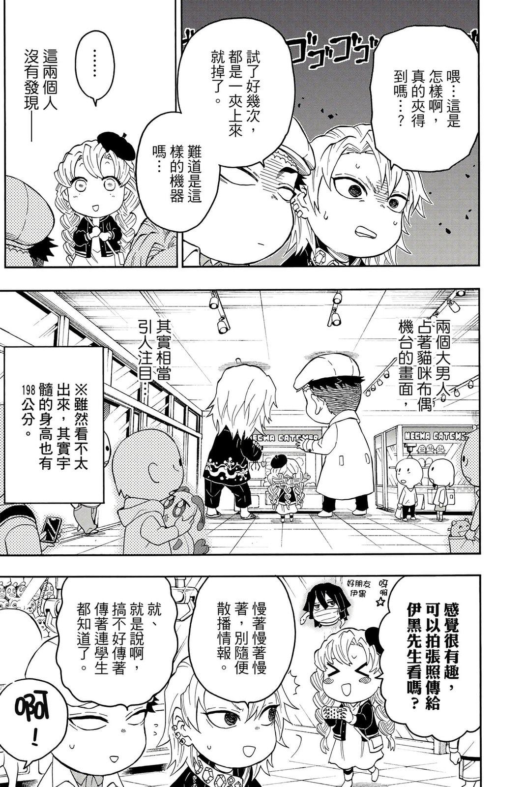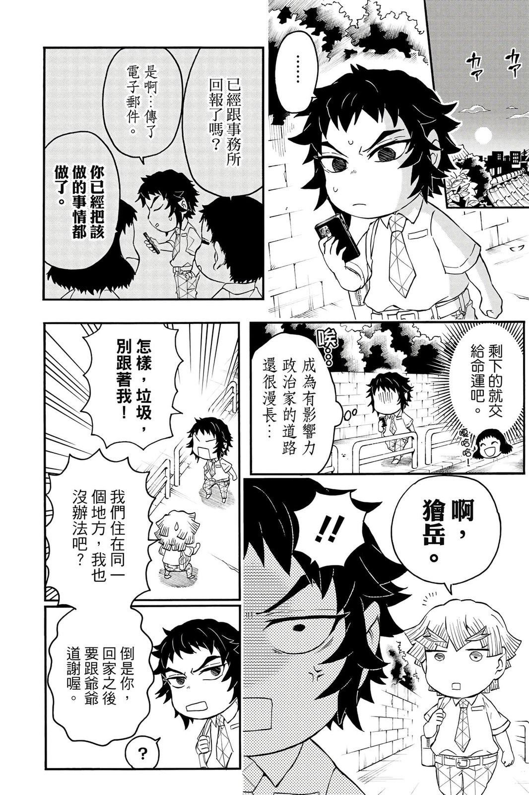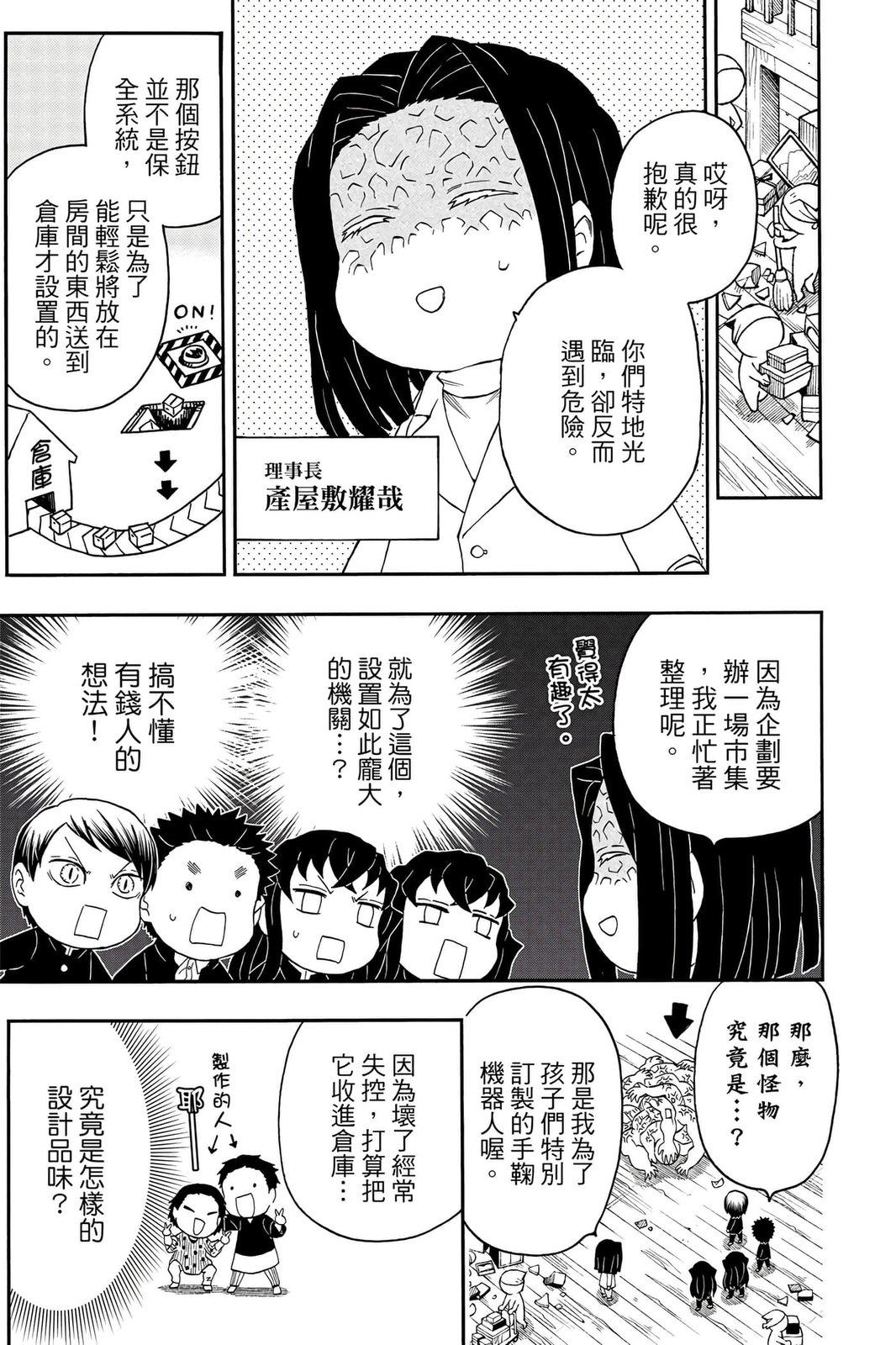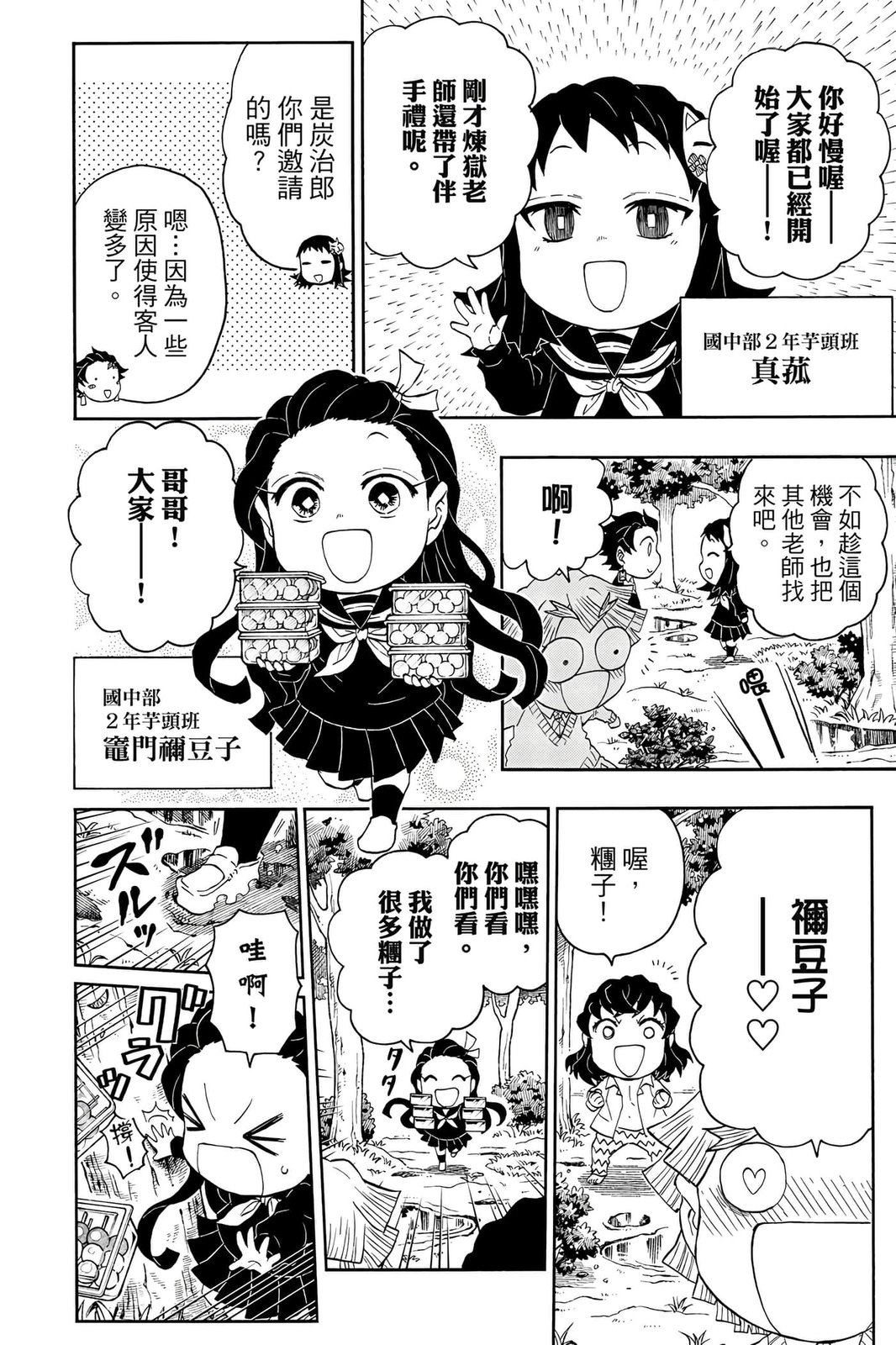原本只是「鬼灭之刃」单行本里的附录,现在由帆上夏希老师操刀,让原本的角色成了老师跟学生。故事舞台是一所国小国中高中一贯的私立学校?鬼灭学园,一始就是炭治郎跟善逸都迟到,为了顺利进入由体育老师?富冈所看守的校门,惹出许多笑料。