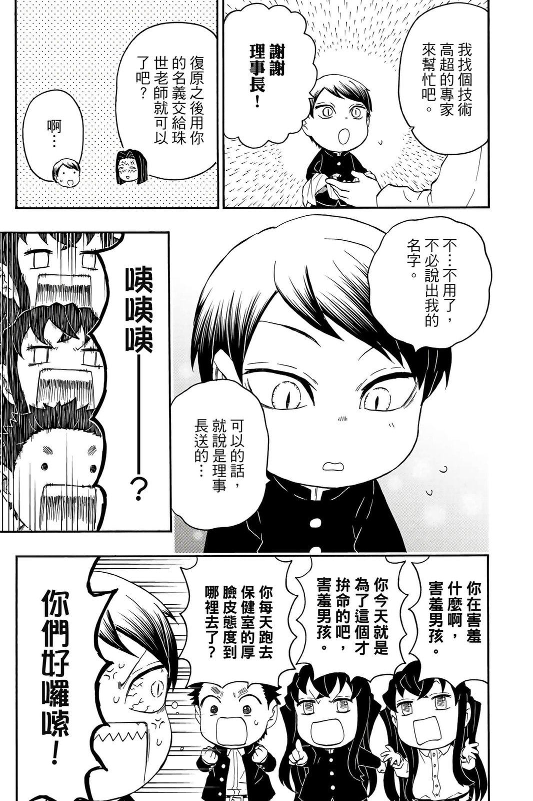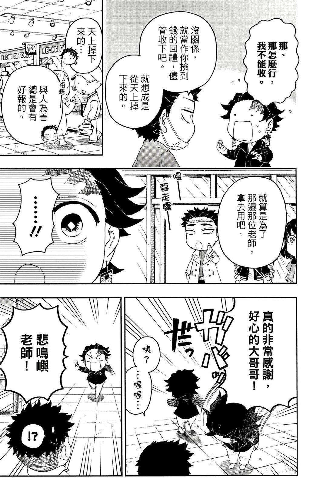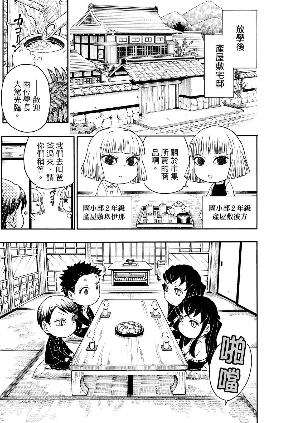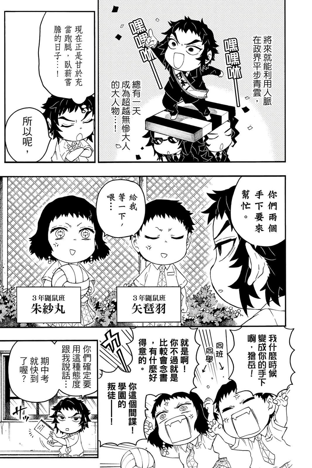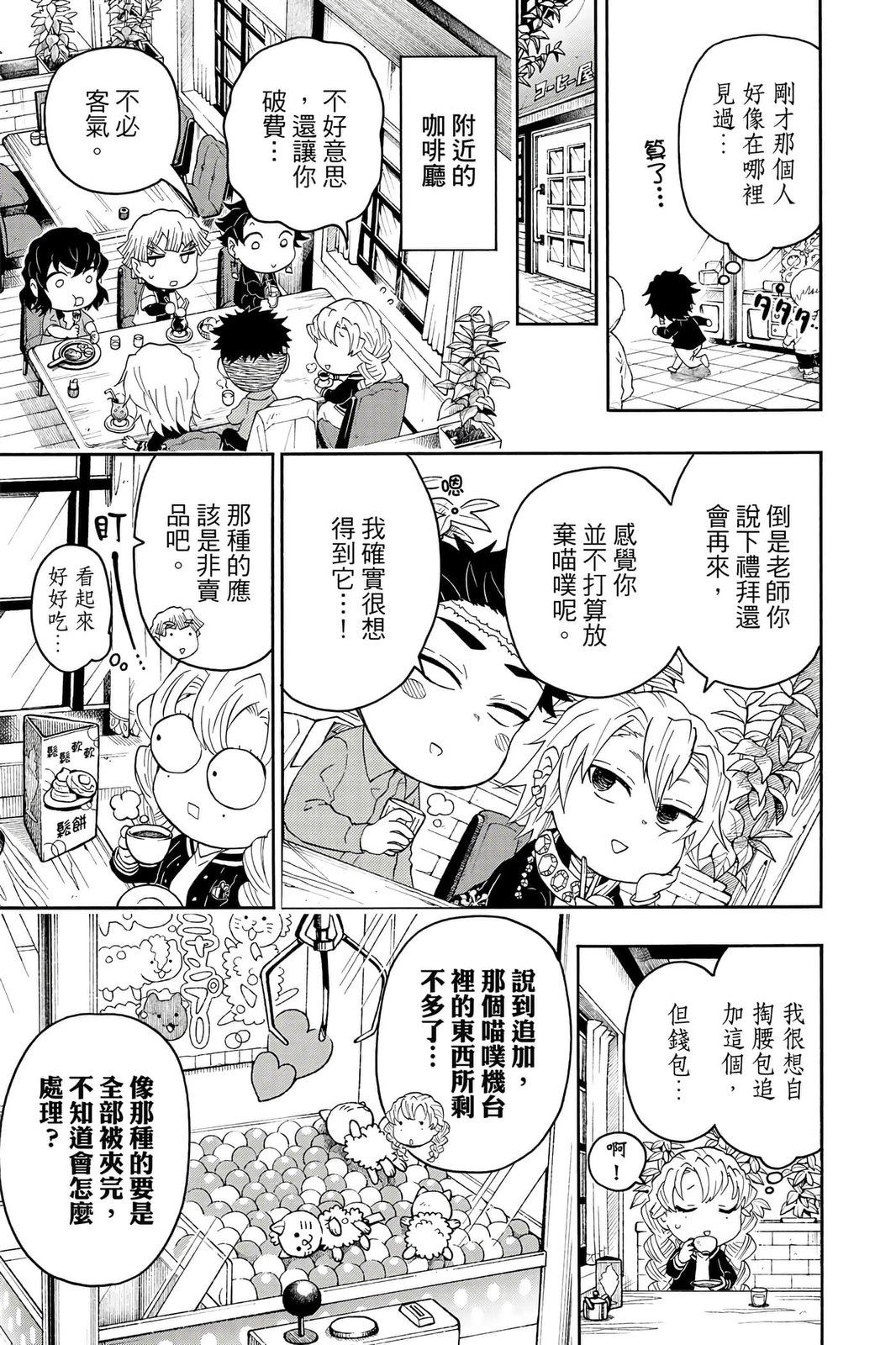 原本只是「鬼灭之刃」单行本里的附录,现在由帆上夏希老师操刀,让原本的角色成了老师跟学生。故事舞台是一所国小国中高中一贯的私立学校?鬼灭学园,一始就是炭治郎跟善逸都迟到,为了顺利进入由体育老师?富冈所看守的校门,惹出许多笑料。