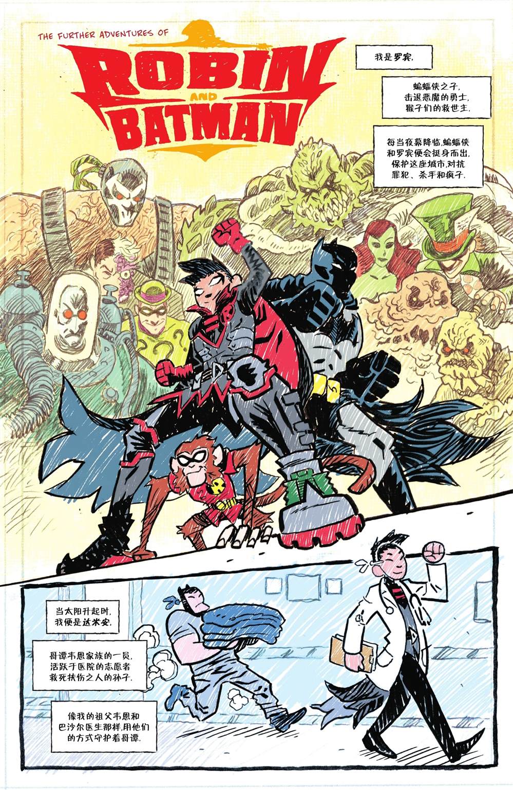 蝙蝠侠与罗宾,活力双雄再联手! 经历过哥谭战争的洗礼后,蝙蝠家族分崩离析。布鲁斯带著即将上高中的达米安住进了褐石屋。二人一面维护父子名流的身份,一面在夜间打击犯罪。同时,一起有关动物进化的惊天阴谋,也在神秘幕后黑手的操纵下逐渐浮出水面。蝙蝠侠和罗宾为保护研究DNA测序的博士,与杀手鳄,逆戟鲸和改头[]头换面的恐怖三煞大打出手,战斗中,蝙蝠侠不慎吸入未知气体,被迫陷入蝠群的围攻[-折叠]