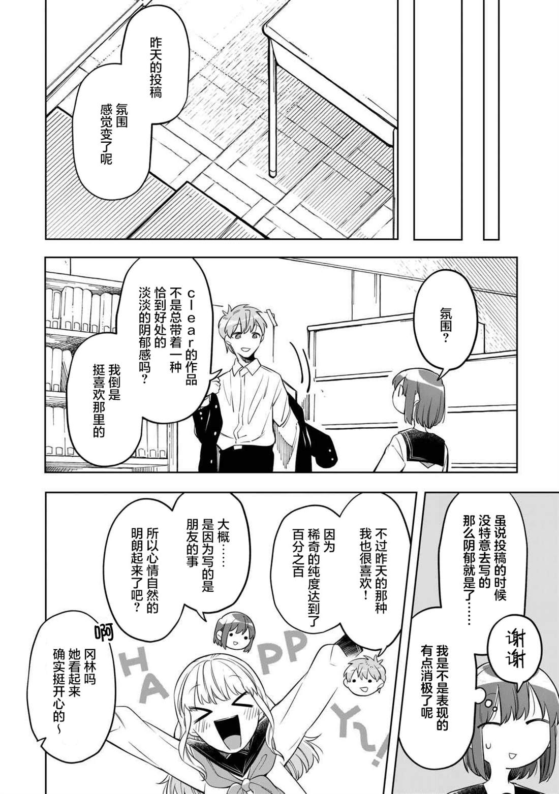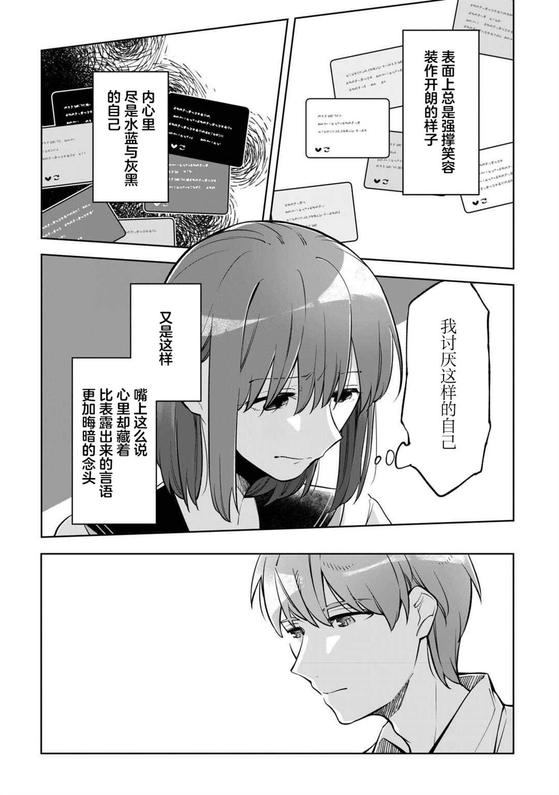 总是在意周围人而压抑自己的雫,每日都会把自己无法倾诉的思绪化作150字的SNS在“Letter”上悄悄投稿。 就这样某一日,同班同学驱为了参加Letter的比赛,提出了“希望能一起创作故事”的请求。为了寻找故事的灵感,向季节与颜色进行探索采风的二人,在结伴同行的这段时间里,逐渐相互吸引,同时,也将[]将相互触及对方心底深处的秘密……!?渴望成为他人却始终透明的二人的故事就此—— 青春小说×V家P杯大奖获奖作品,万众期待的漫画化![-折叠]