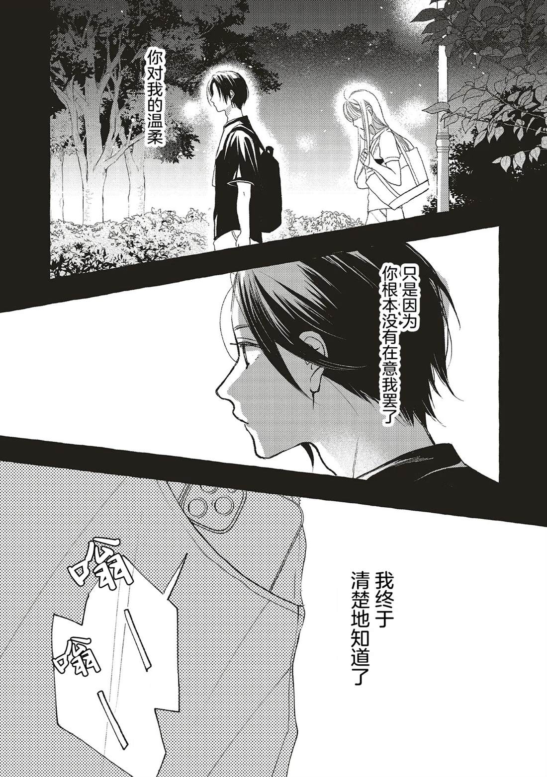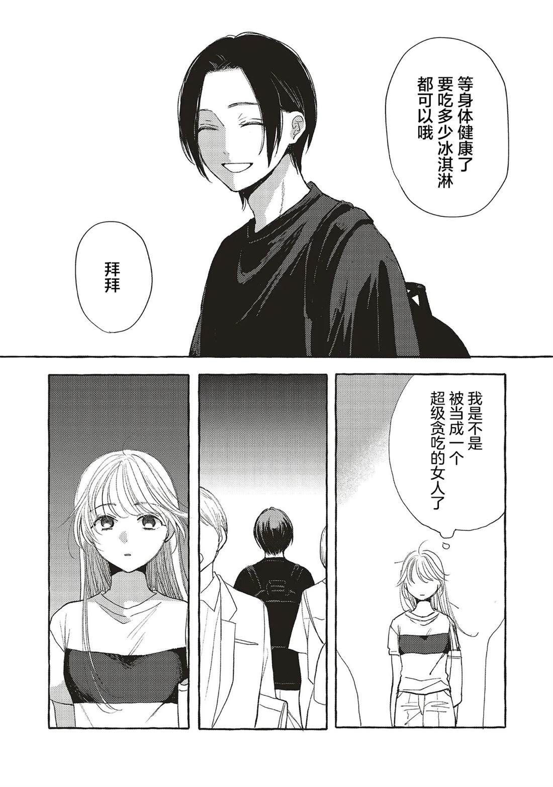 遥和其他人一样,是个平凡而疲惫的公司女社畜。她唯一的乐趣就是在下班回家的路上,去公园里的自动售货机买冰淇淋。随后,她也和经常在公园里遇到的一位年轻男子(自认为)聊些傻事。即便遥甚至不知道那人的名字,她也在为了和他聊天而努力工作著。但有一天,她发现他暗恋著一个女人——而她不知不觉中,也发现自己爱上了他[]他。这是一个发生在夜晚的公园的爱情故事,讲述了一段单相思的邂逅[-折叠]