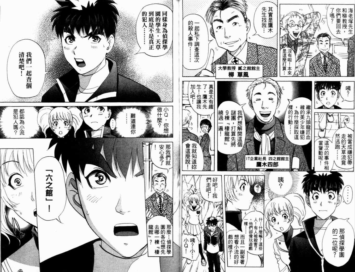 佐藤文也2001年继《金田一少年之事件簿》之后的全新侦探力作,延续金田一的辉煌神话,万望期待,绝对不容错过。 为了达成“成为世界第一的侦探!”愿望,小Q挑战的是传说中的名侦探──团守彦所主辨的“侦探学园”突破传统的入学测验!一起与瞬间记忆者小惠、野性男儿金太、IT小鬼数马等强大对手,解各种超难解的[]的谜题!为了能进入最顶尖的侦探养成班“Q CLASS”,五个各怀技能的侦探少年,被逼流落在孤岛上,所面对的强大敌人,竟然是世人闻风丧胆的“膛手杰克”?接续金田一神话的精彩推理巨著亦由此而…[-折叠]
